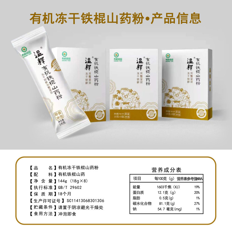 温释 Органическая утюжная палка Huaishan Yam замороженный сушеный порошок 18G*8 Удобно пить беременных женщин и детей здоровым без добавок
