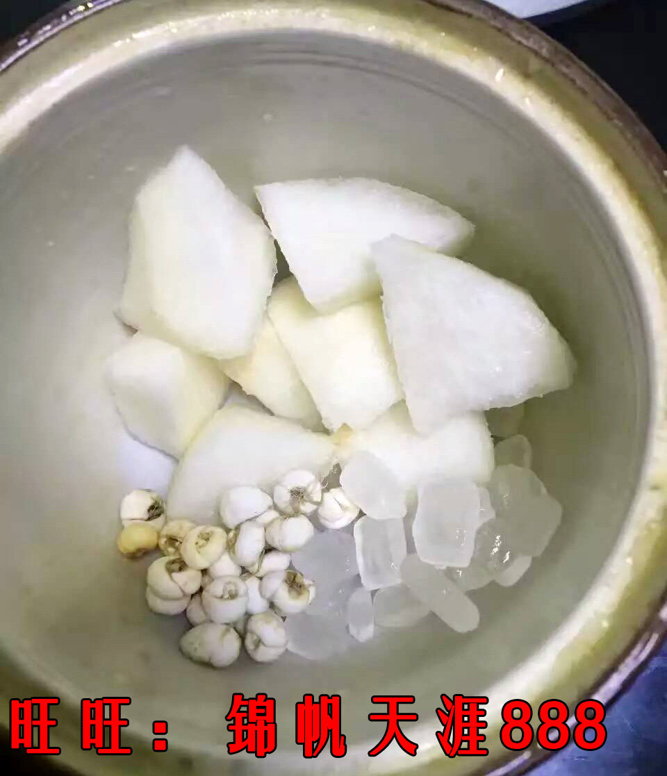 2Используйте красную грушу, положите красную грушу в толчок, поместите Chuanbei, а затем накройте ее, а затем готовьте ее с 30 граммами белого генерала Мао Кука 15 граммов Chenpi вместе. Подождите, пока груши будут тушить. Выпейте. Выпейте. Полем