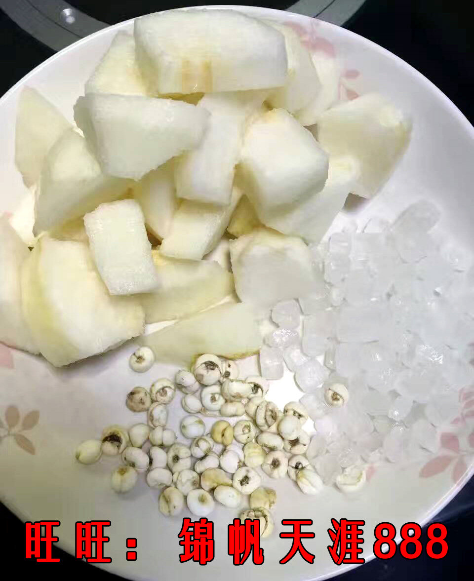 1. Нарежьте груши, разбейте сичуанскую корочку в порошок, положите их в воду и вылейте в кору Сычуань и готовьте вместе. Это будет сделано в течение 30-40 минут. Выпейте груши и суп вместе, и лучше добавить немного меда.