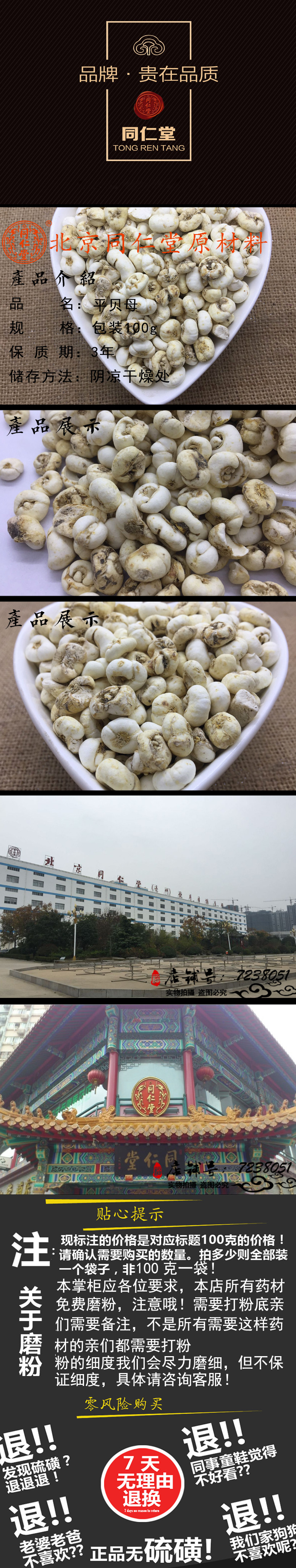 Пекин Тонгрентанг Китайский лекарственный материал пинг -фритария Fritillaria fritillaria off