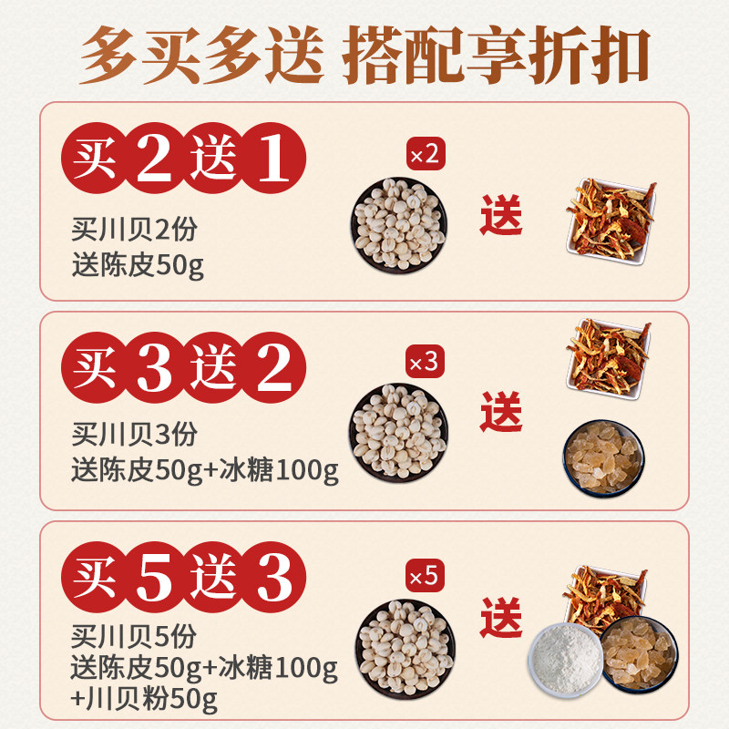 Купить 5 и получить 3 Sichuan Fritillaria 50G Подлинная Sichuan Sichuan Belle Fan Fan Китайские лекарственные материалы сосны Бедген без специфических диких серы гладких