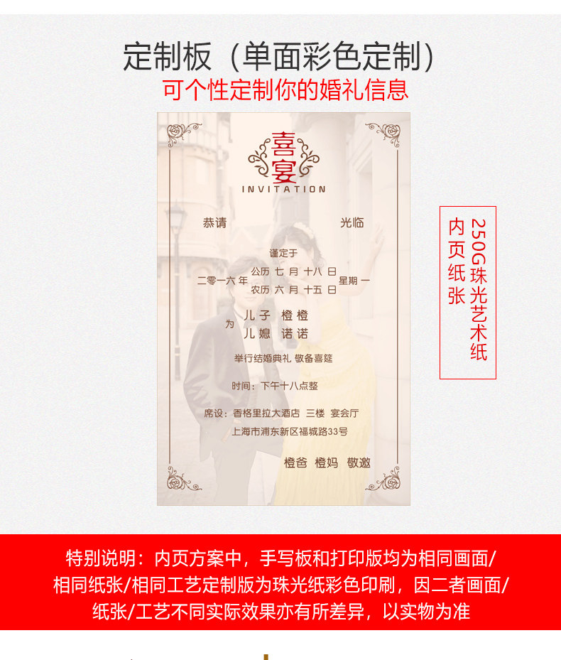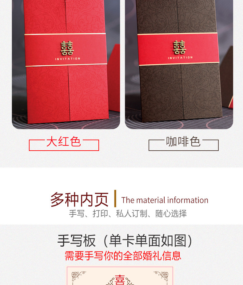 | Цвет: | Красная модель | Рукописный версия, Красная модель | Печатная версия, Красная модель | Индивидуальная версия, Кофе -цвет | Рукописный версию, Кофе -цвет | Печатная версия, Кофе -цвет | индивидуальная версия, Купить (конверт+наклейка Seal), Напоминание: оболочка и внутренняя страница исправлены. Если вам не нужно вставлять, оставьте сообщение! |
