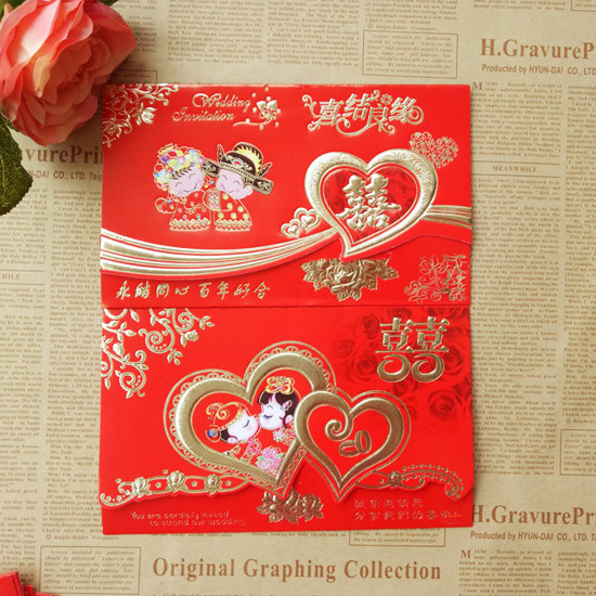 Специальное предложение свадебное приглашение в стиле Китай три % от кембрийского мультипликационного свадебного приглашения Свадебное свадебное банкет Свадебные принадлежности