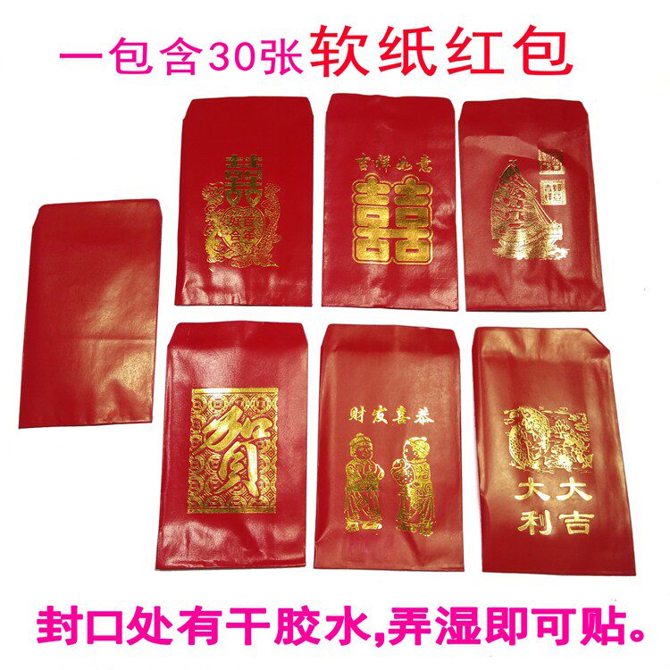 Маленькая мягкая бумага Красные конверты запечатаны 30 штук, подходящие для 1-500 Юань Даджили Грандлона Хи-Шарктер Мини 100 Юань