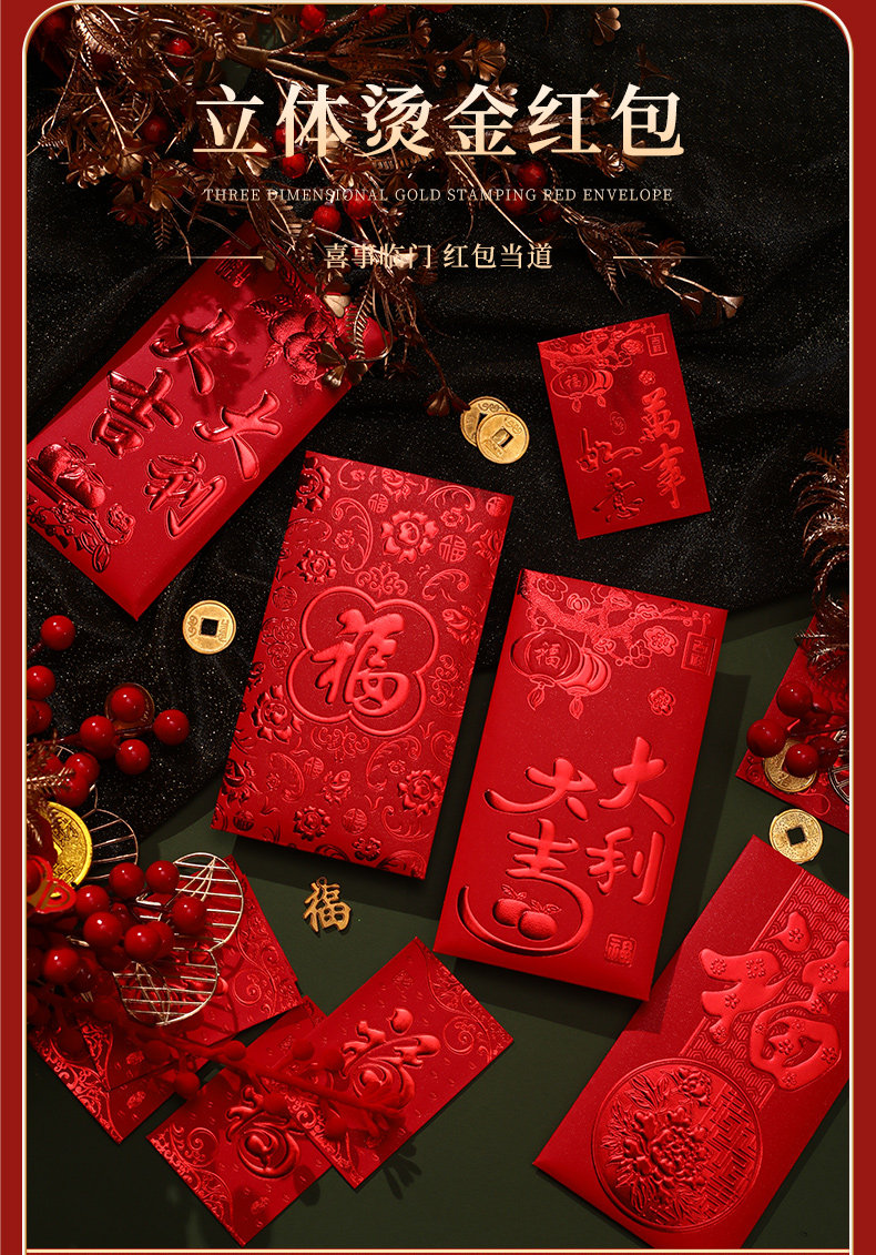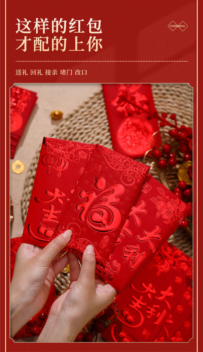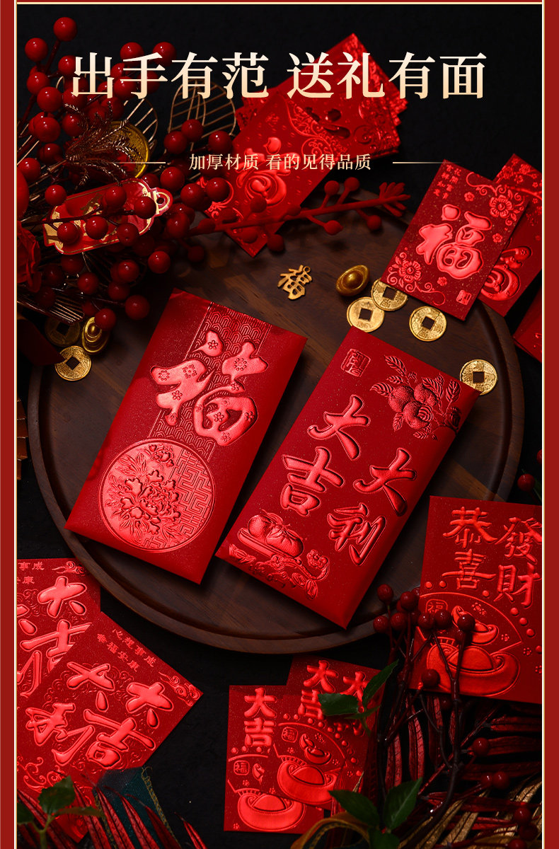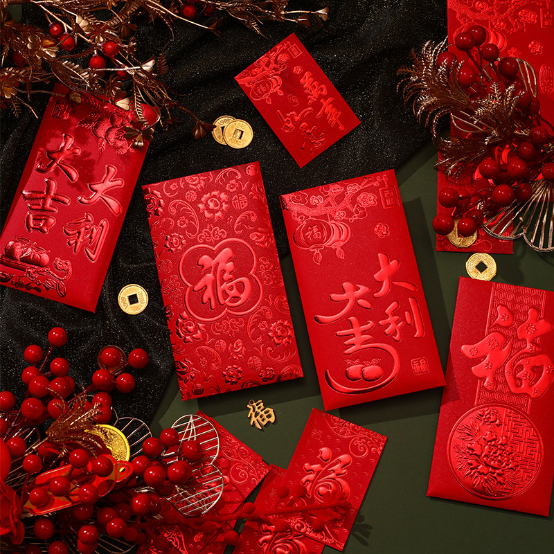 Красные конверты для нового года и выйти замуж на первом году змеи 2025 Новый год Красные сумки конверта Универсальный обычай большие, средние и небольшие преимущества квот запечатаны