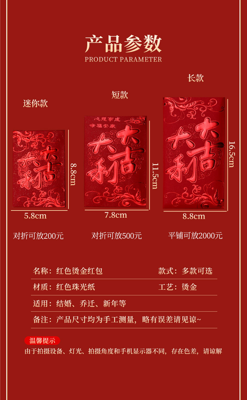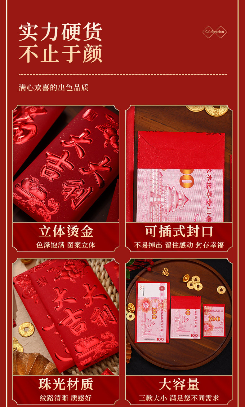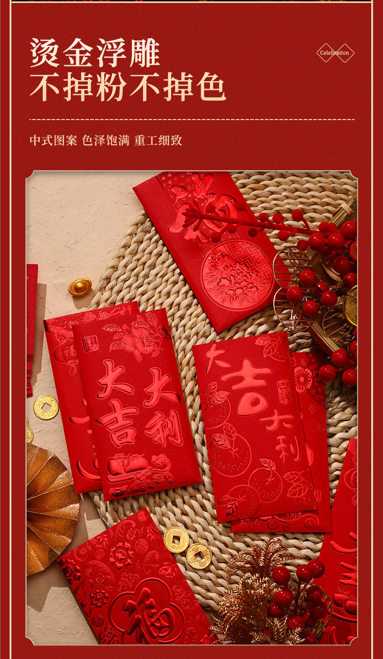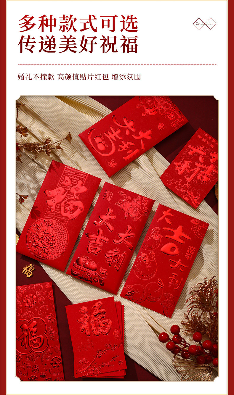 Красные конверты для нового года и выйти замуж на первом году змеи 2025 Новый год Красные сумки конверта Универсальный обычай большие, средние и небольшие преимущества квот запечатаны