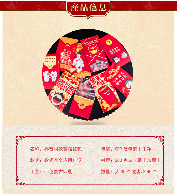 | Технические характеристики: | Большой красный конверт [30 утолщен], Маленькая красная конверт [40 утолщен] |