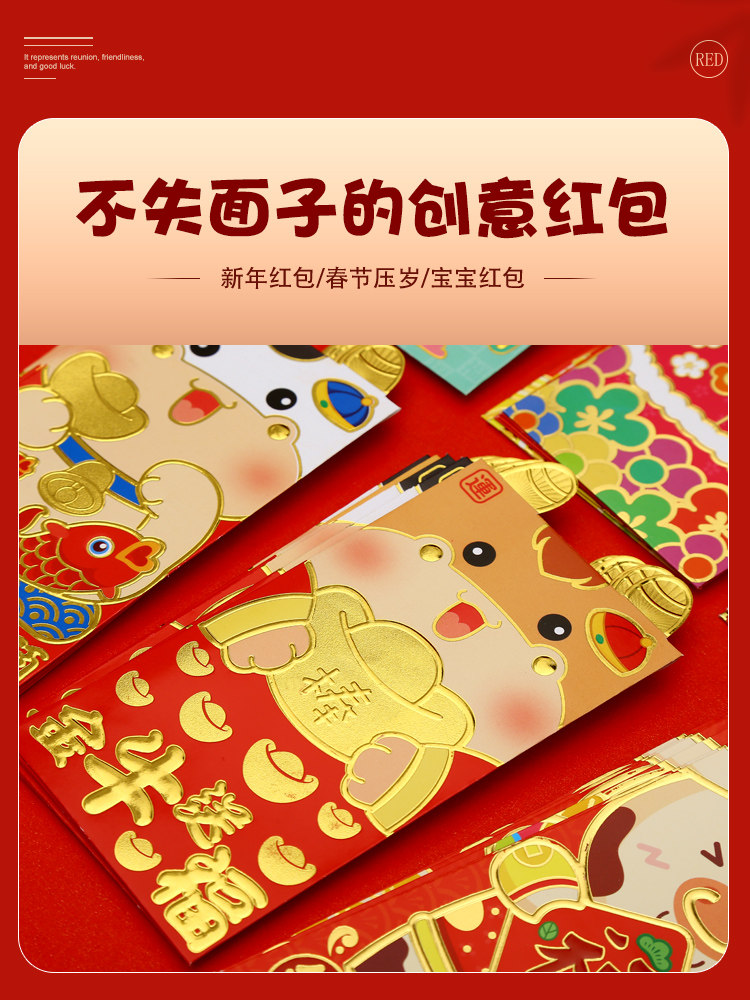 Ли -тюленя 2023 Трехмерная новогодняя красная конверт Сумка личность творческий весенний фестиваль любит год милых кроликов Мультфильм Красный конверт Весенний фестиваль