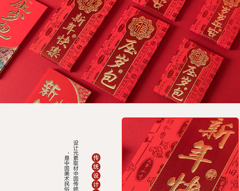拾锦 Новогодние новогодние сумки Spring Festival Red Convelope Новый год Новый год и пинг тысяча Юаней Жесткая бумага - сотня юаней