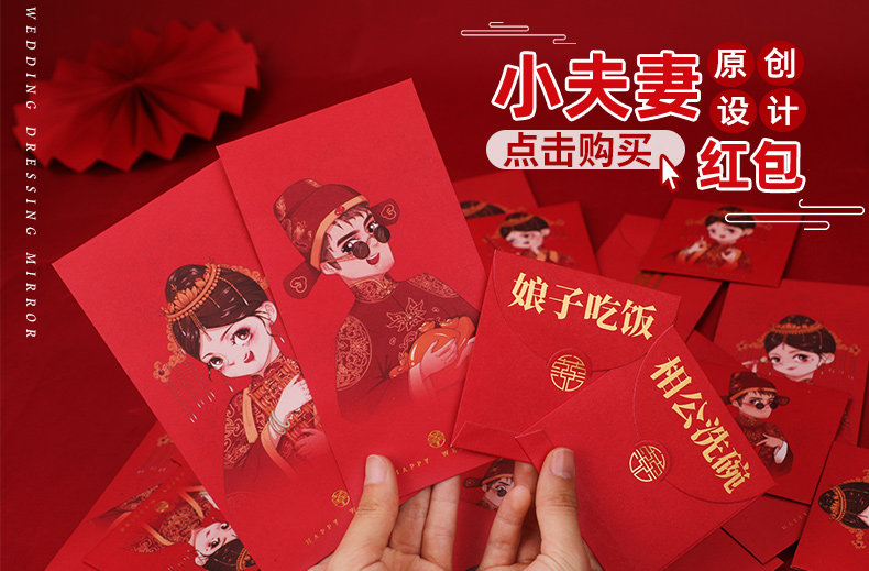 Red Envelope Wedding 2023 Новый маленький маленький размер HI персонажи красная сумка конверта 10 000 юаней свадебный пакет свадебный пакет брак