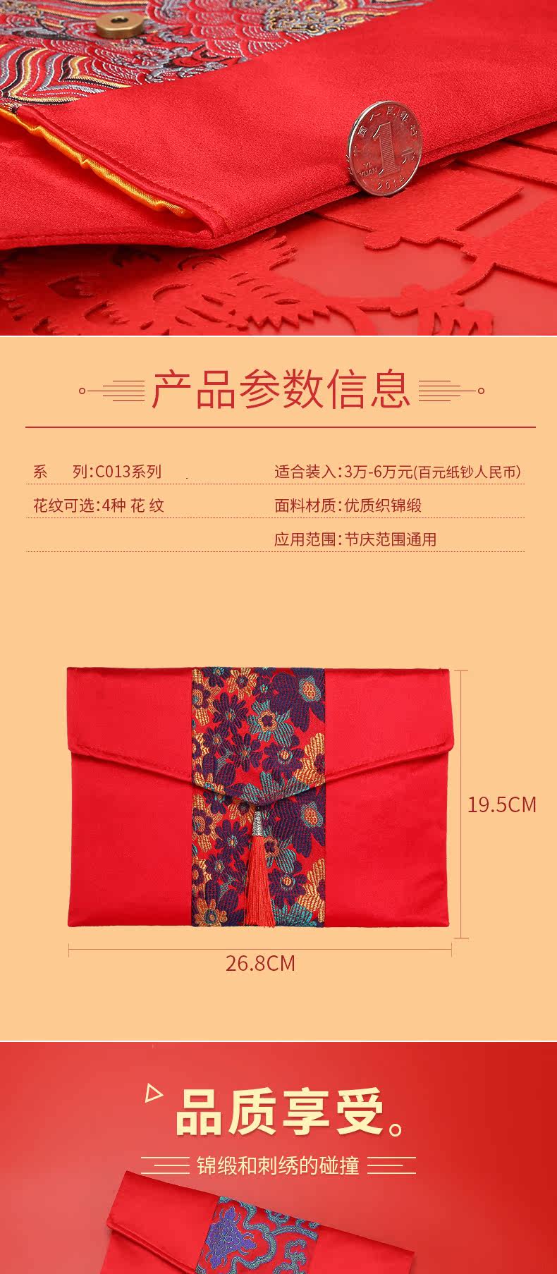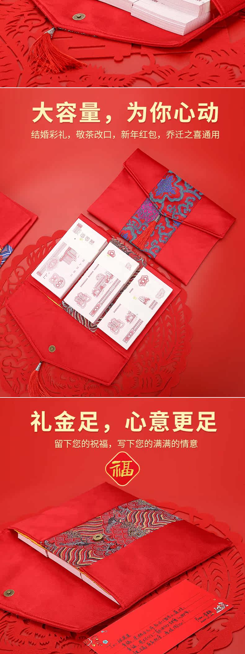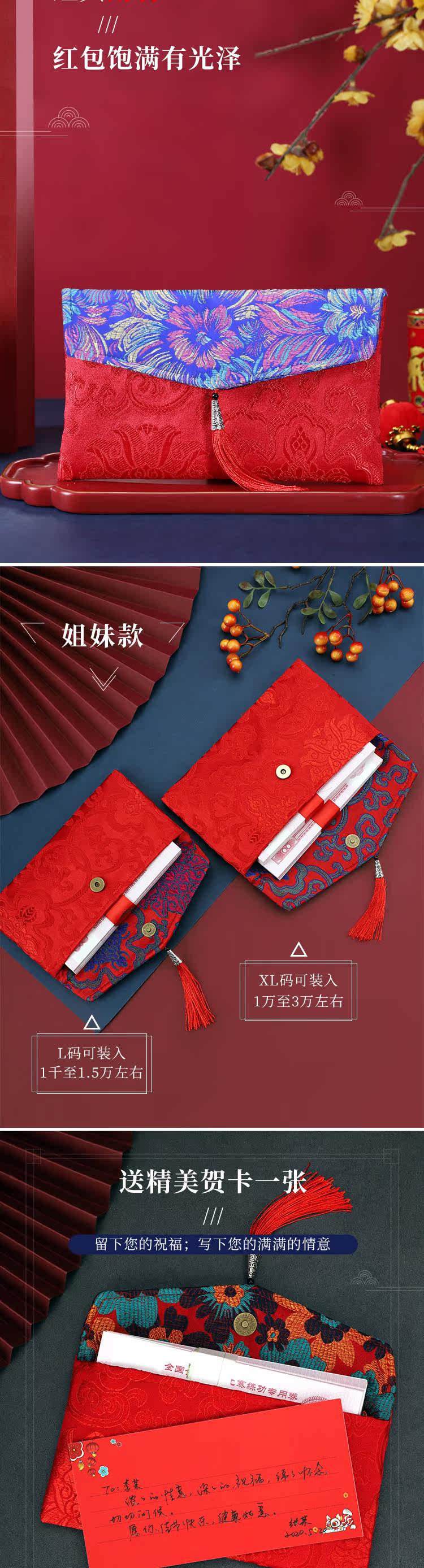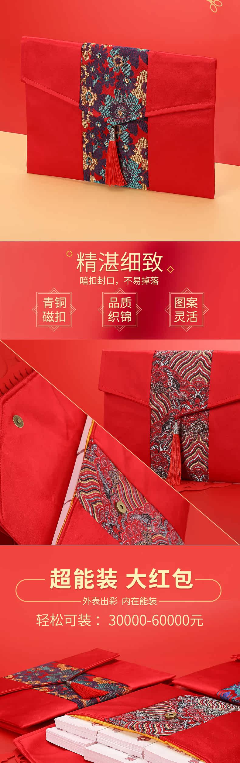 Красная конверт сумка Новый год 2021 Свадебная ткань Niu Niu Niu Ежегодная сборы в вышив