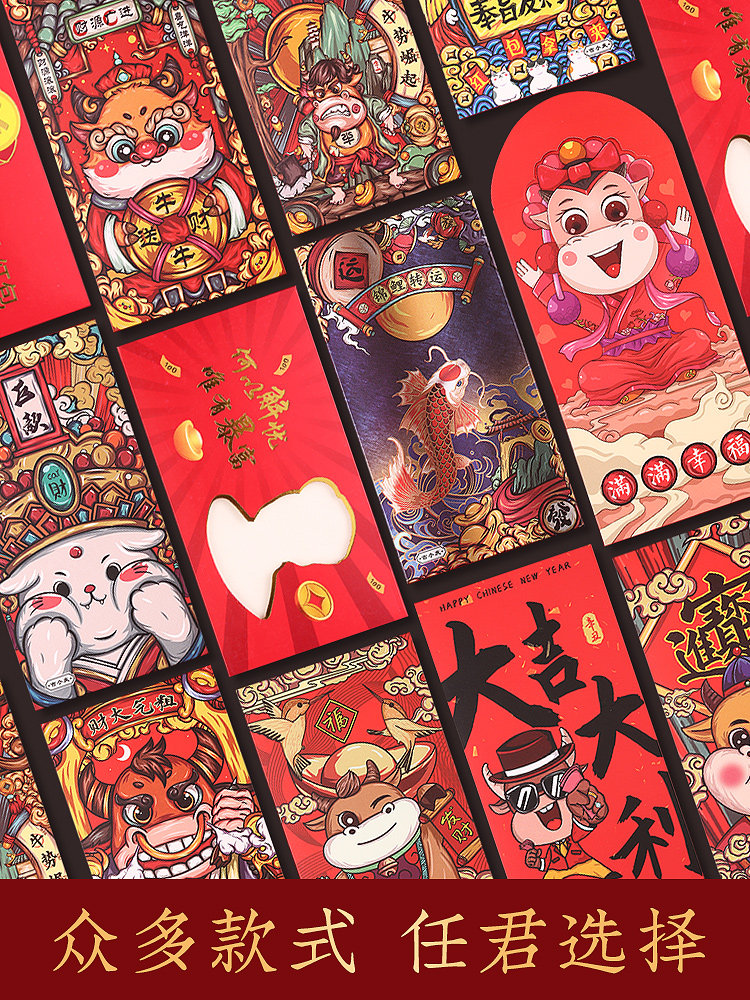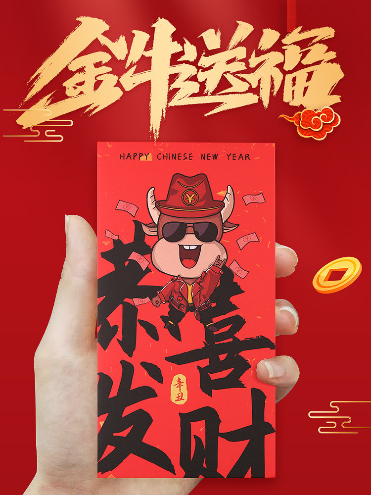 2021 Niu Niu Guo Chao Red Packet Новый год мультфильм Cartioon Creative High -Oend Личность -это сумка с красным пакетом