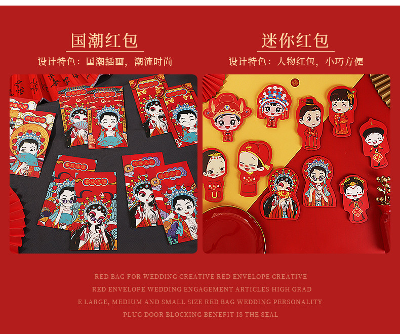Свадебная красная конверт творческая личность с высокой мини -дверью Большая, средняя и небольшая тяжелая интереса -это свадебный подарок, возвращает подарки