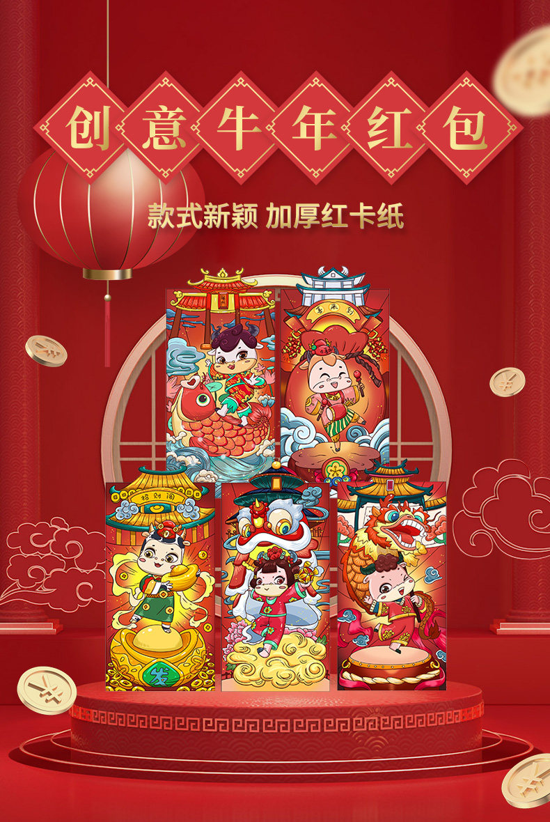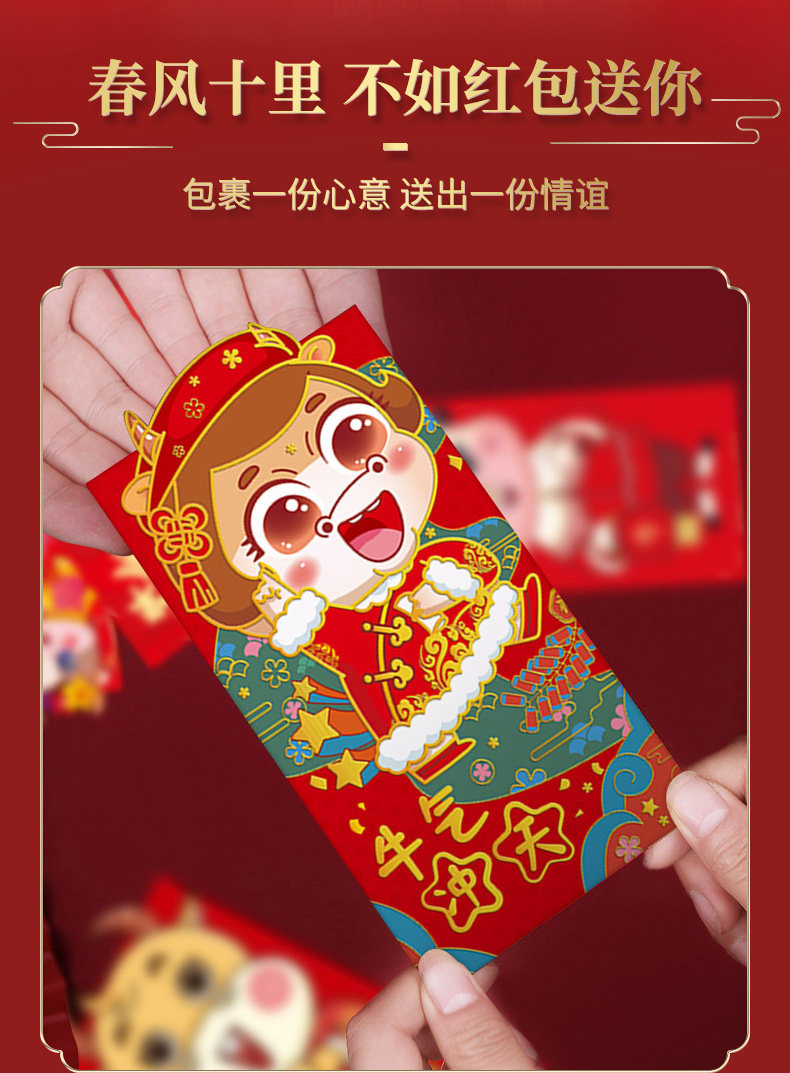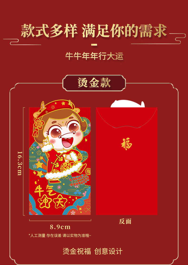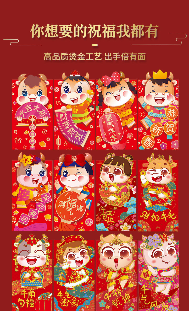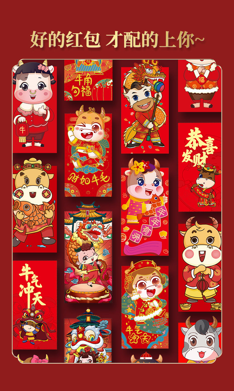 Новый год 2021 Niu Red Package Cartoon Cartioon Personal Creative Creative Big Red Bag GM -это новогодняя сумка для новогоднего дня для новогоднего