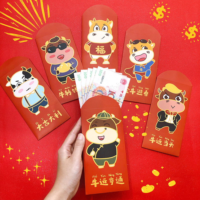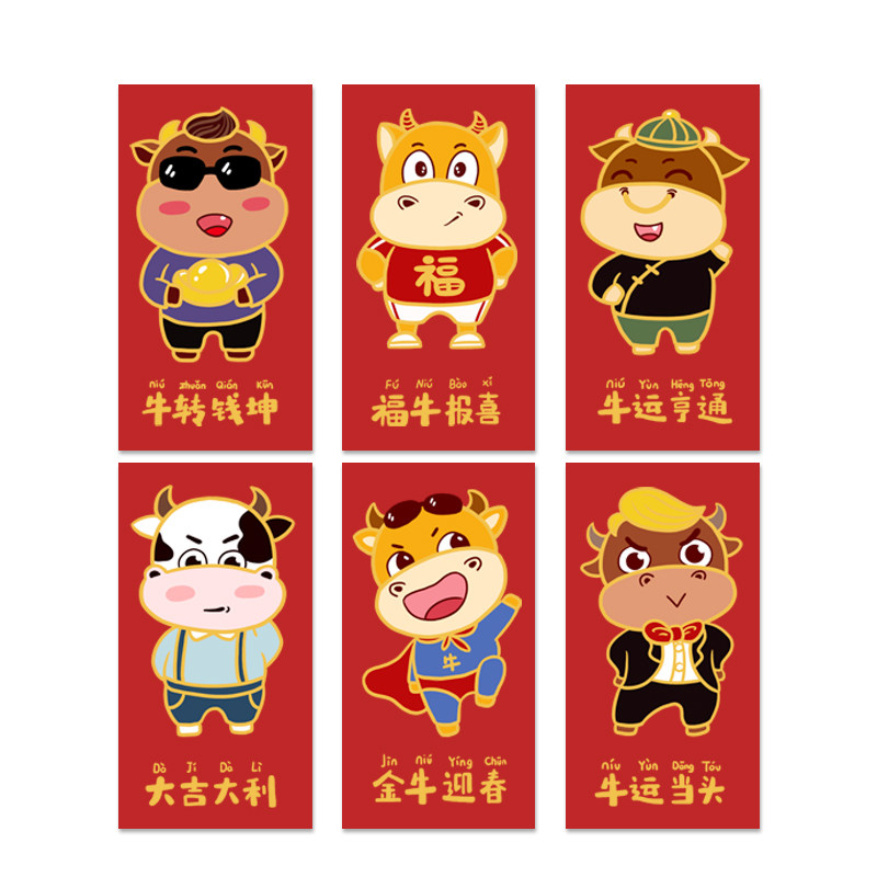 2021 Niu Niu Zodiac Red Packet Новый год весенний фестиваль прибыль - это использование личностей и творческих мультфильмов милые новогодние карманы