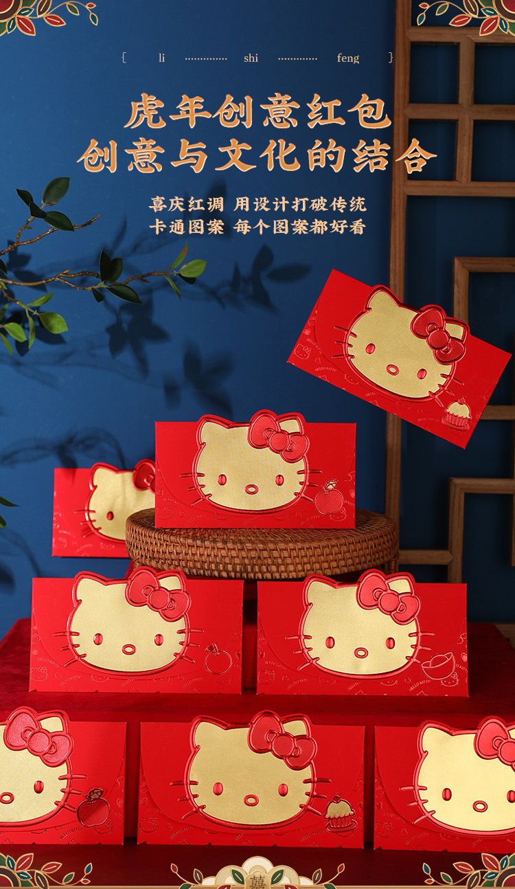 2025 Disney Kitty, новогодний большой красный конверт, персонализированный креативный трехмерный милый мультяшный новогодний красный конверт, сумка