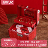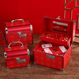Свадебный подарок золотая коробка цветовой коробка Три золотых ювелирных коробок китайский стиль в стиле макияж для макияжа Makeup Engeding Red Suitcase Bare Box