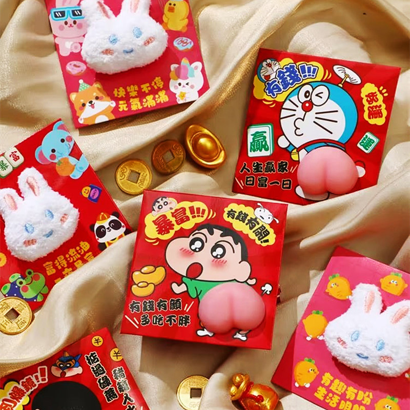 Симпатичный новогодний мультфильм релиз сжатие артефакт красный пакет конверт Трехмерный Q-Slide Hip Creative Новый год Прибыль