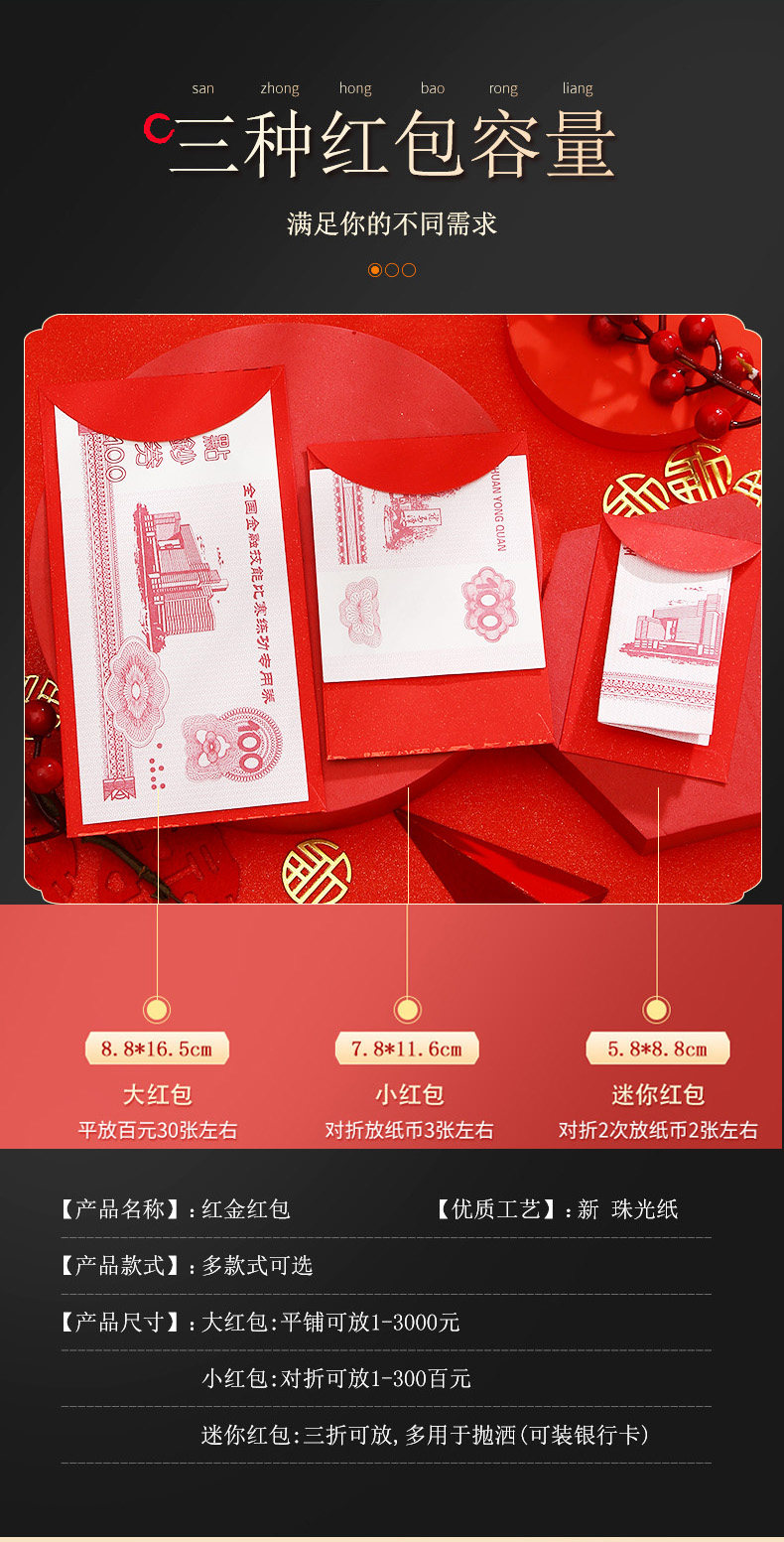 | Технические характеристики: | 36 маленьких красных конвертов, 24 больших красных конвертов, 72 маленьких красных конвертов, 48 больших красных конвертов, 120 мини -красных конвертов, 102 большие красные конверты, 150 маленьких красных конвертов, 6 больших красных конвертов |