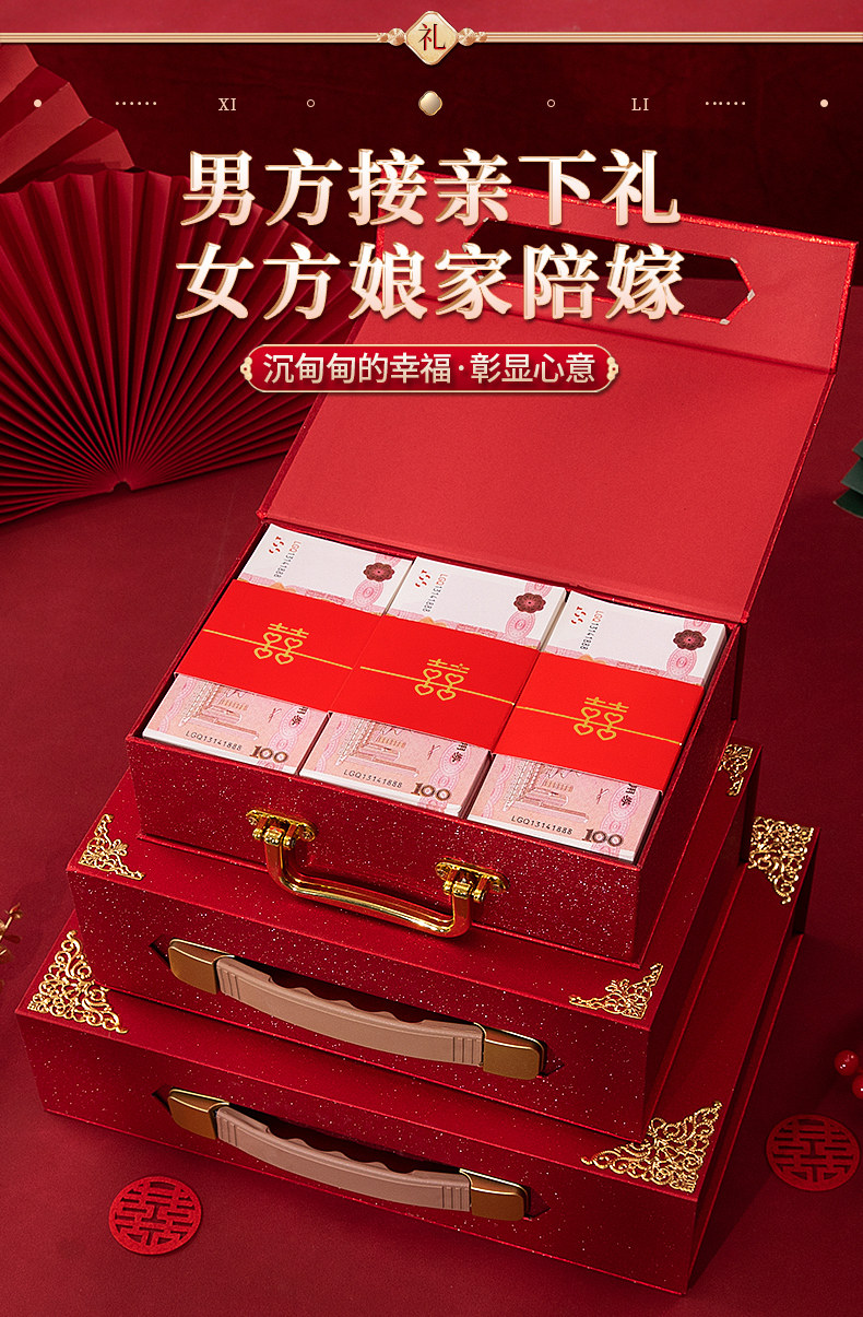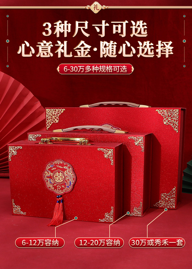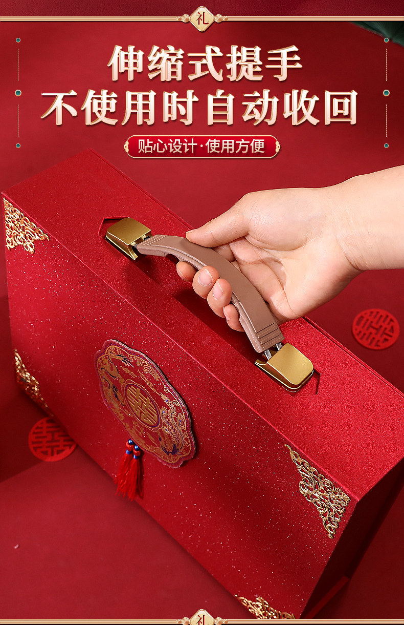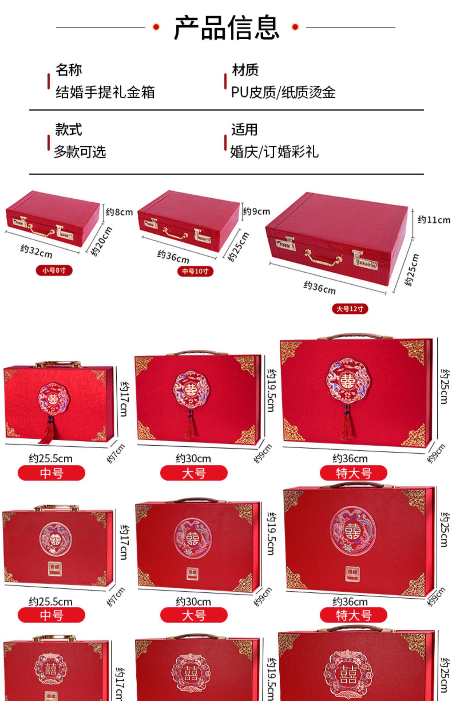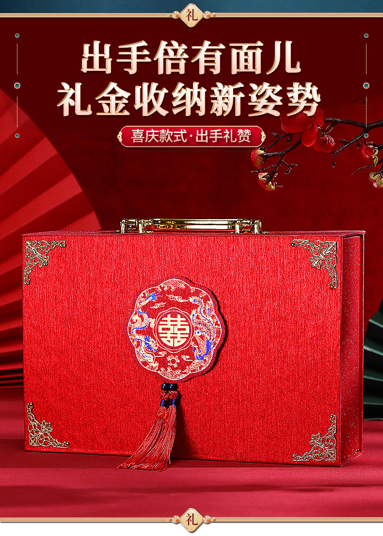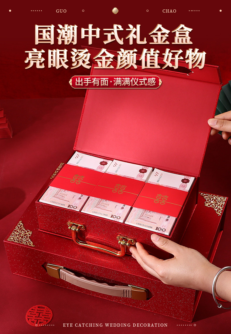 Обручальная лотерея денежная коробка установка кассовая коробка, чтобы забрать подарки, чтобы нанять золотую подарочную коробку Dowry Suitcase Gift Gold Box