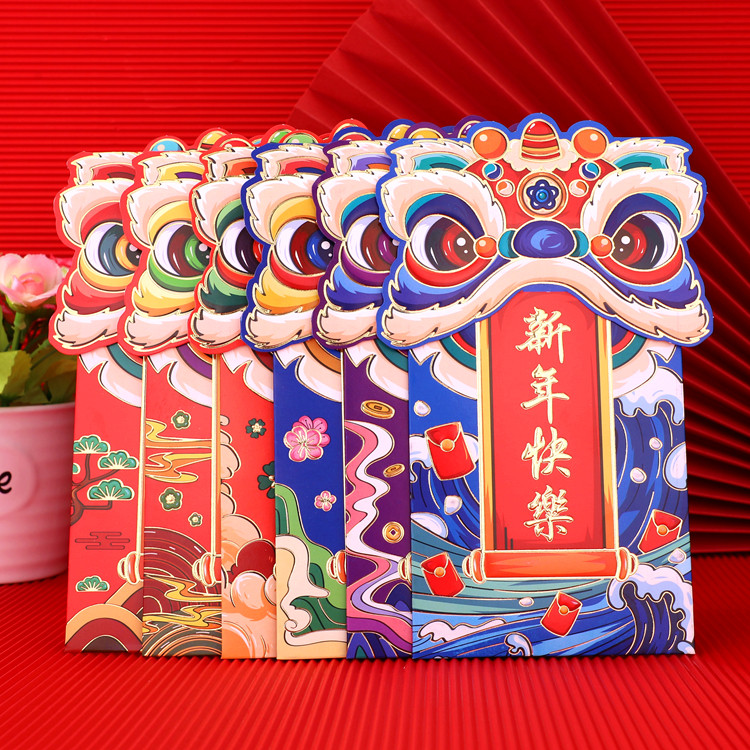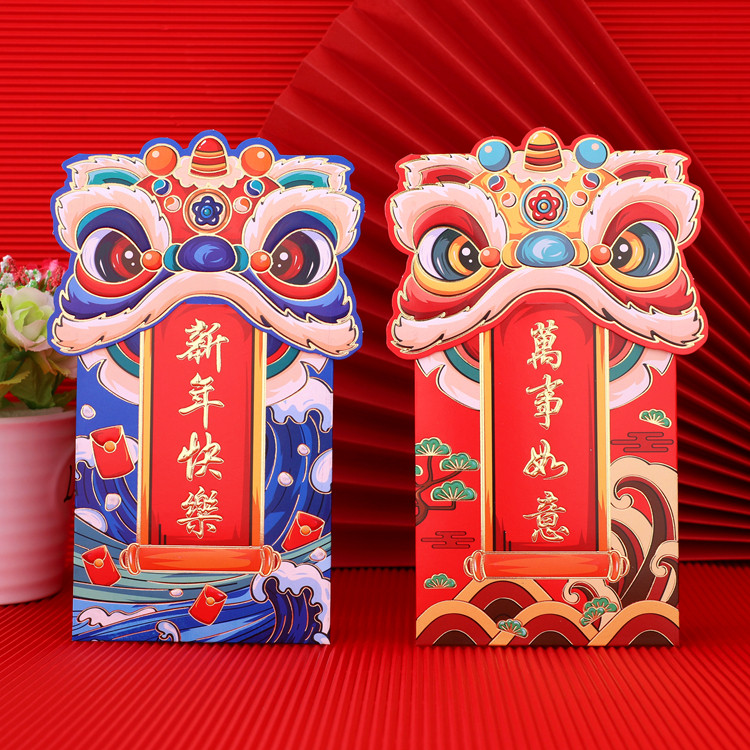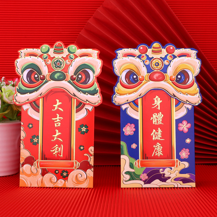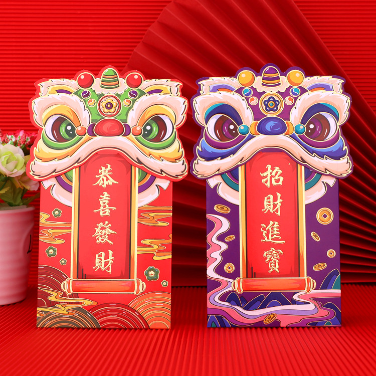 2024 Новая красная сумка конверта Новый год Lion Dance -это креативный трехмерный китайский головолочный конверт, большой конверт большой