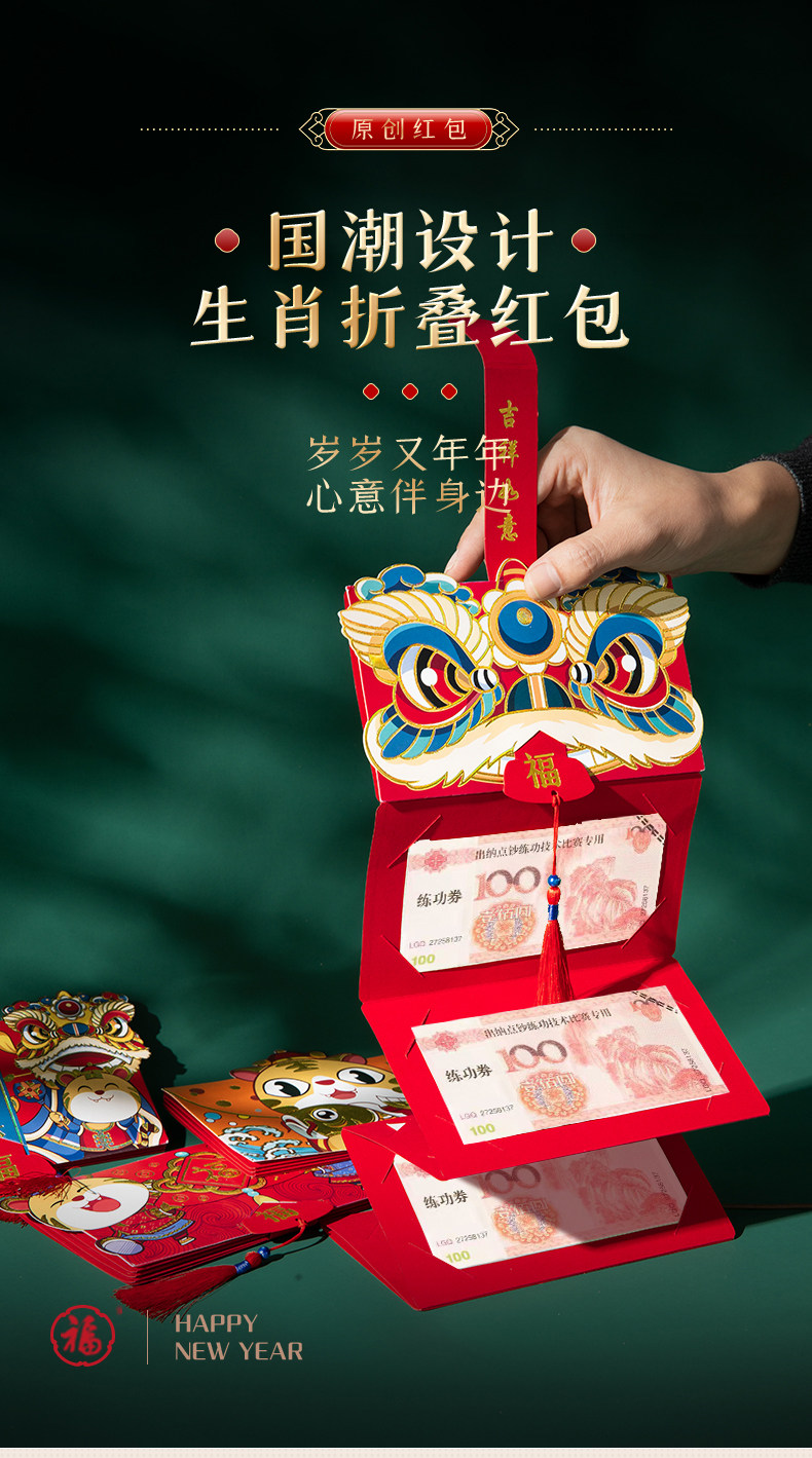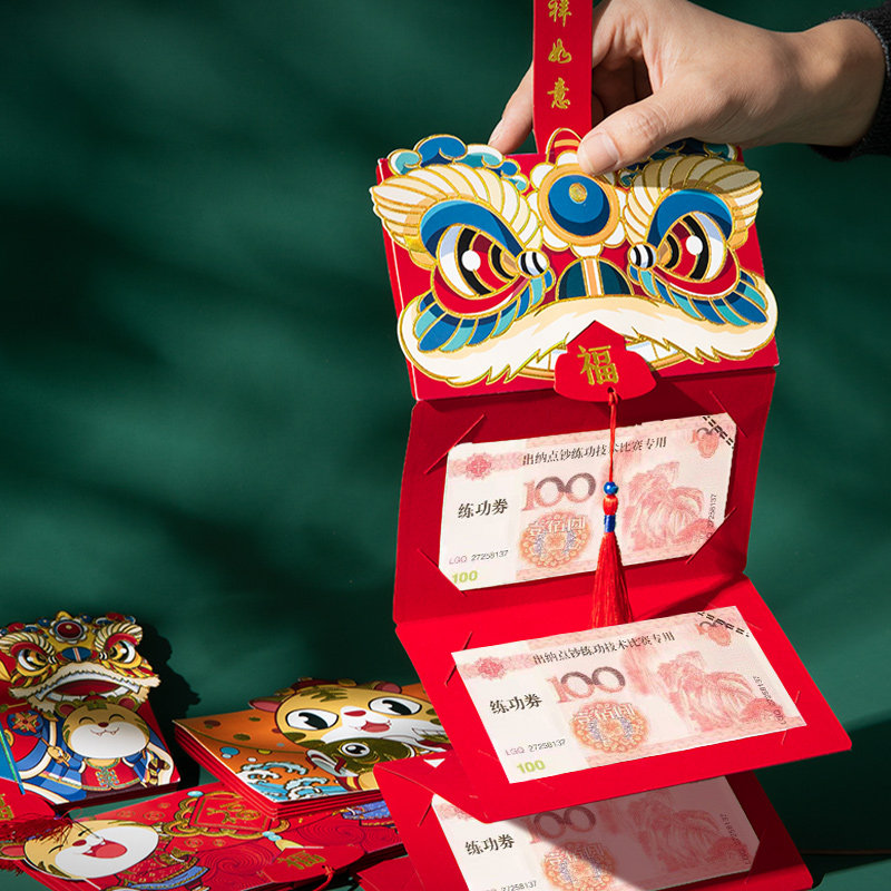 Новогодний новогодний национальный Chao Lion Head Head Red Packet 2023 New Li - это складное соединение мультипликационного ритуального растяжения