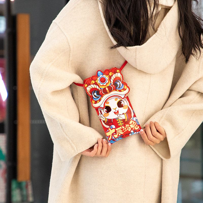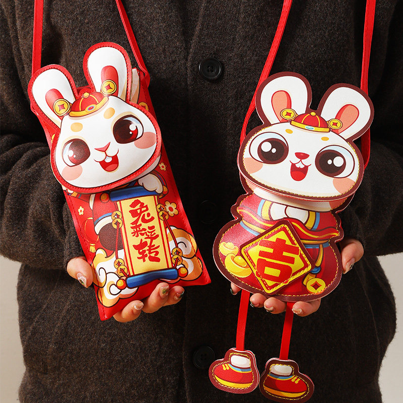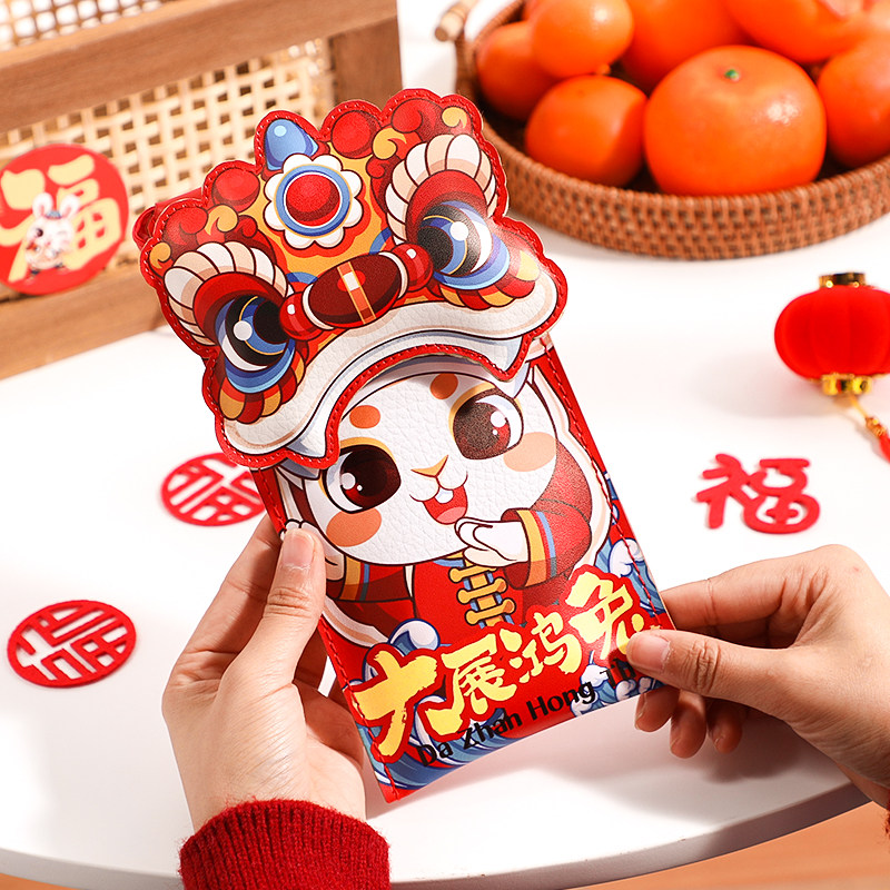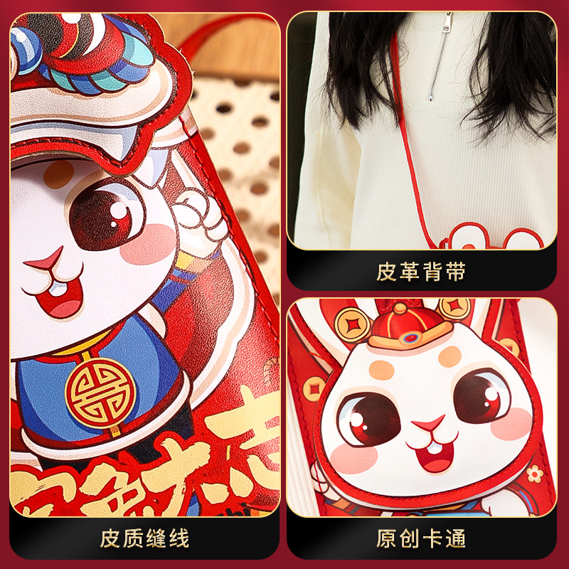 Красная сумка-конверт к Новому году Кролика 2023, Новогодний красный пакет в десять миллионов, Новогодний кожаный красный пакет, Креативный весенний фестиваль Lucky Money