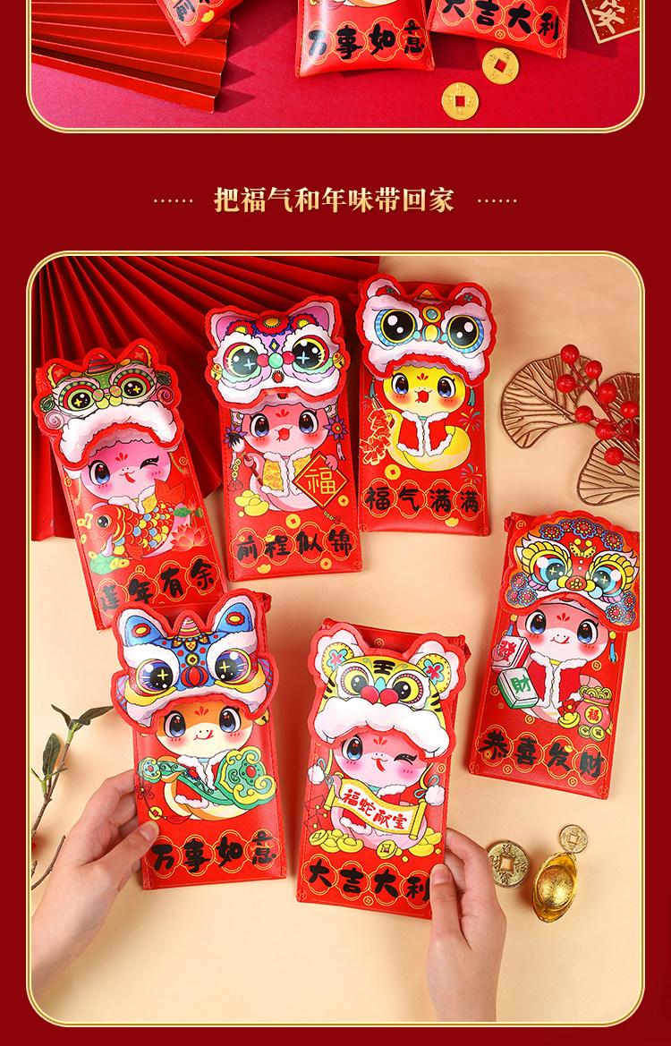 2025 Новая змея новогодние новогодние кожаные красные конверты творческая личность Новая годовалый новый год подарки кошелька запечатывают
