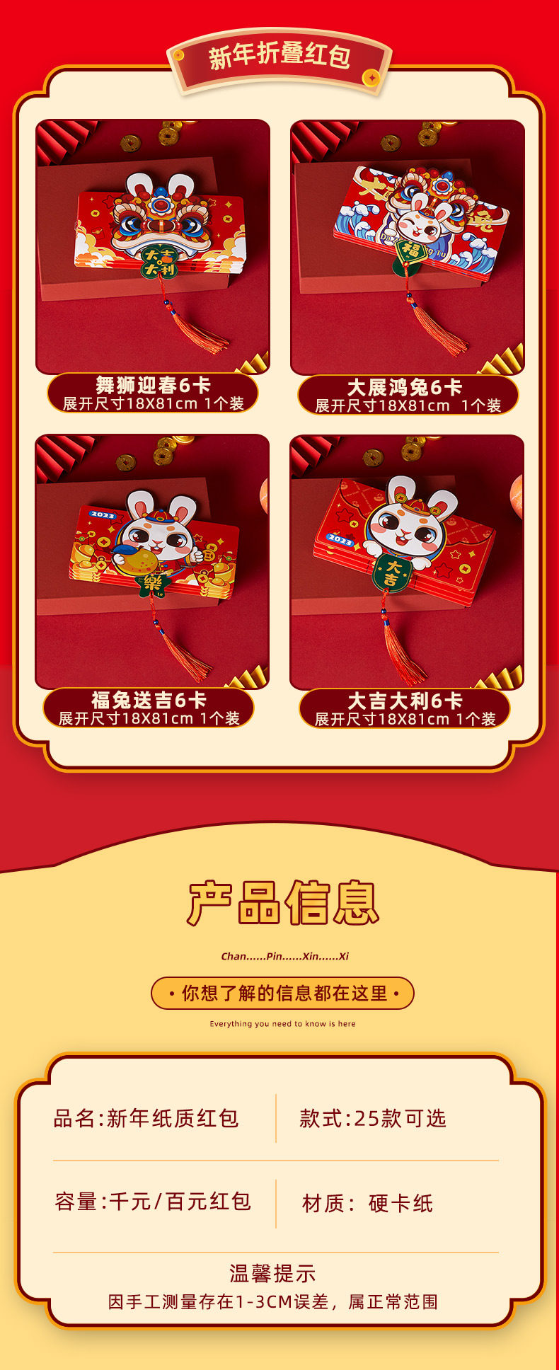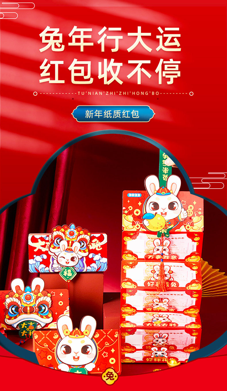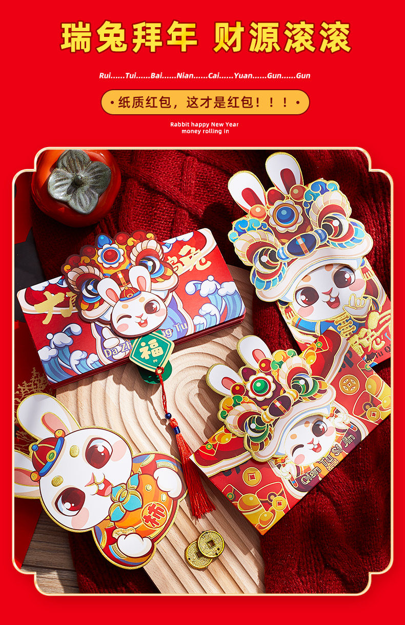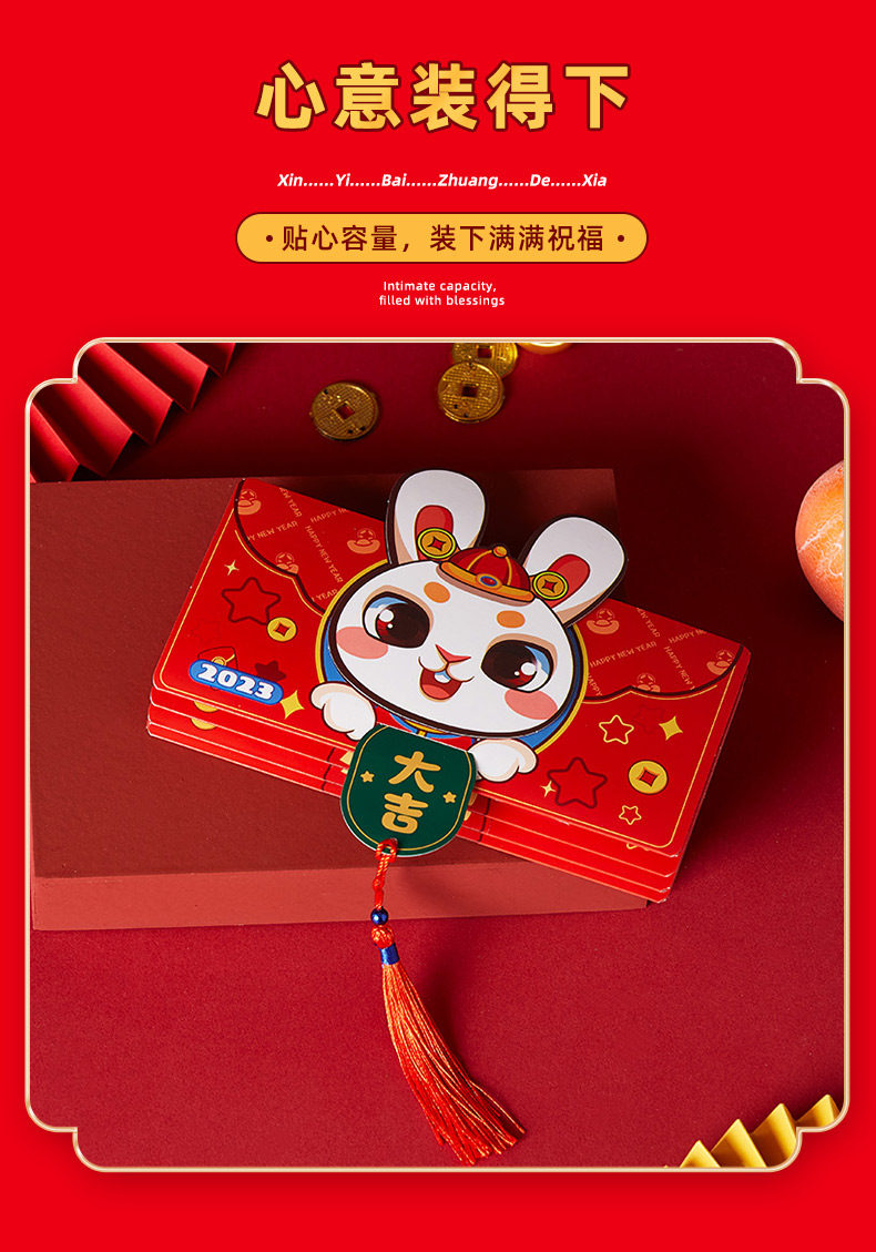Новый год, чтобы переместить свадебную красный конверт 2023 Новый кролик год кролик Ли - китайский новогодний кошелек.