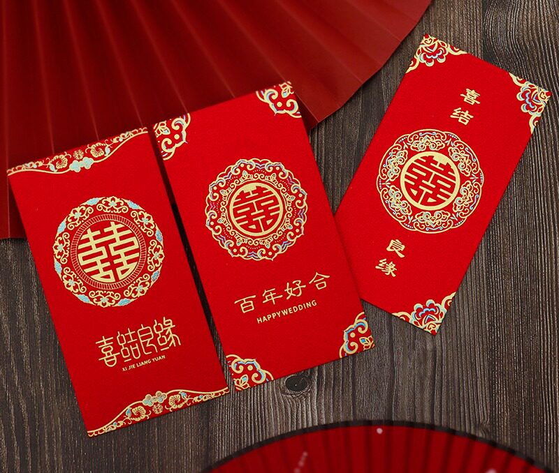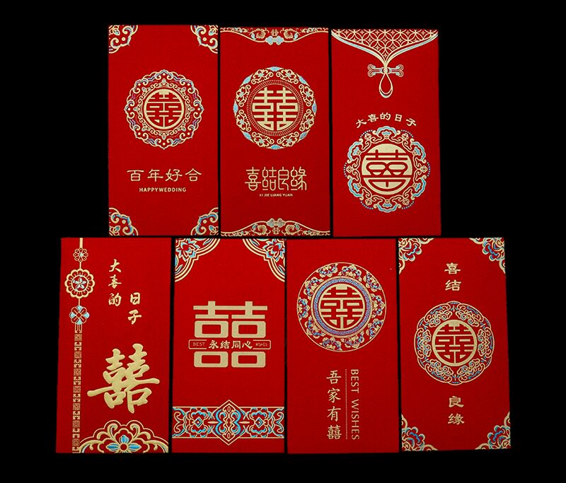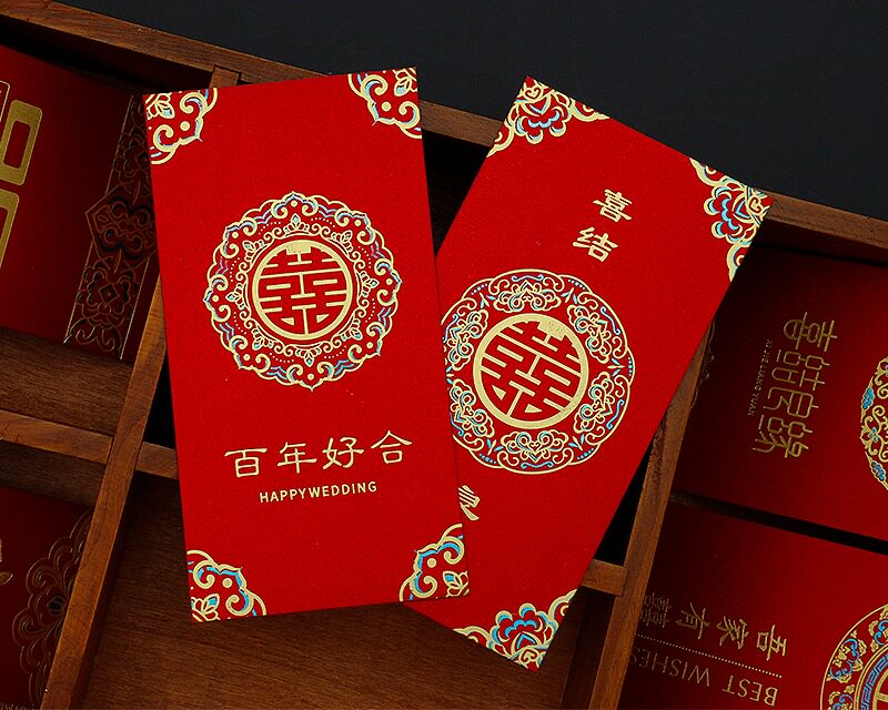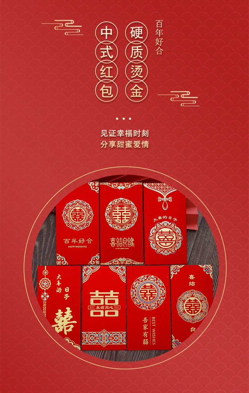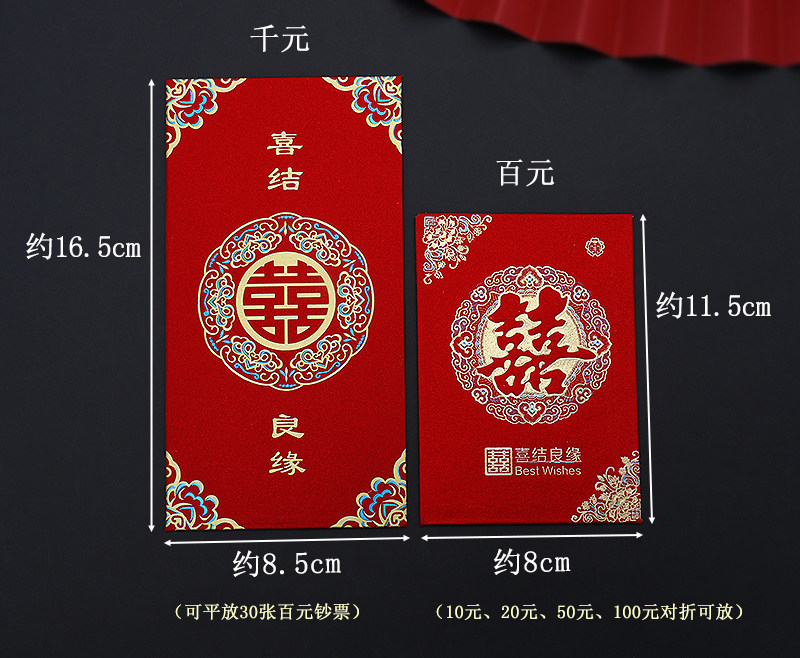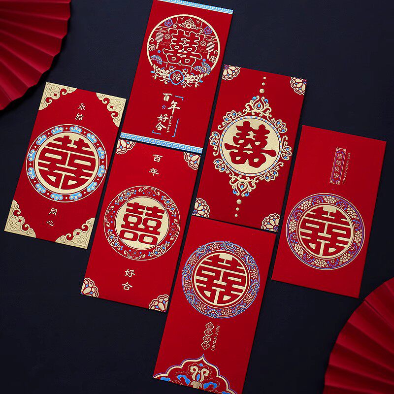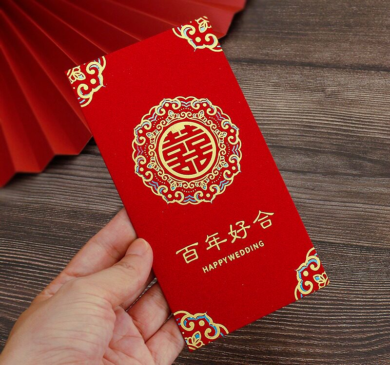 2025 Новый Red Convelope Свадебное специальное предложение - большая двойная свадьба с сотней лет счастливых свадебных слов и красной сумкой конверта