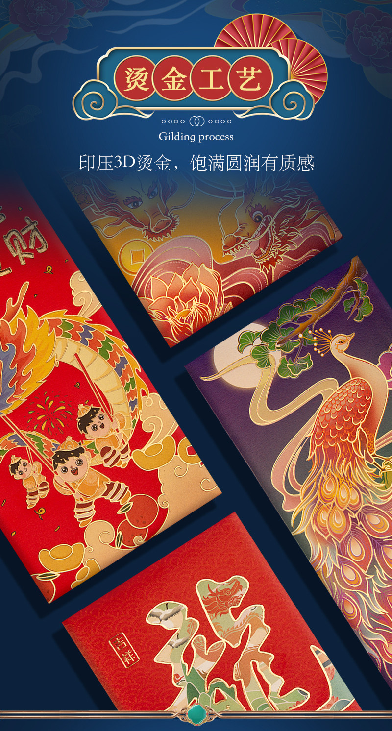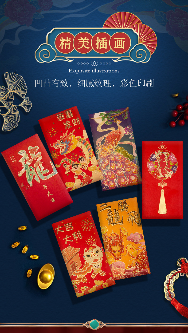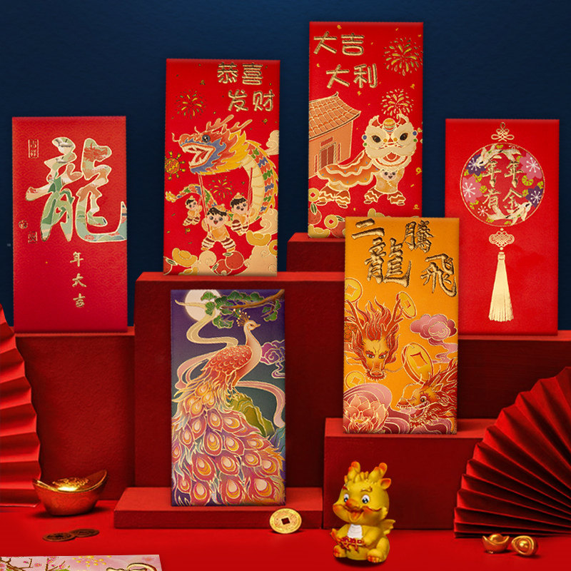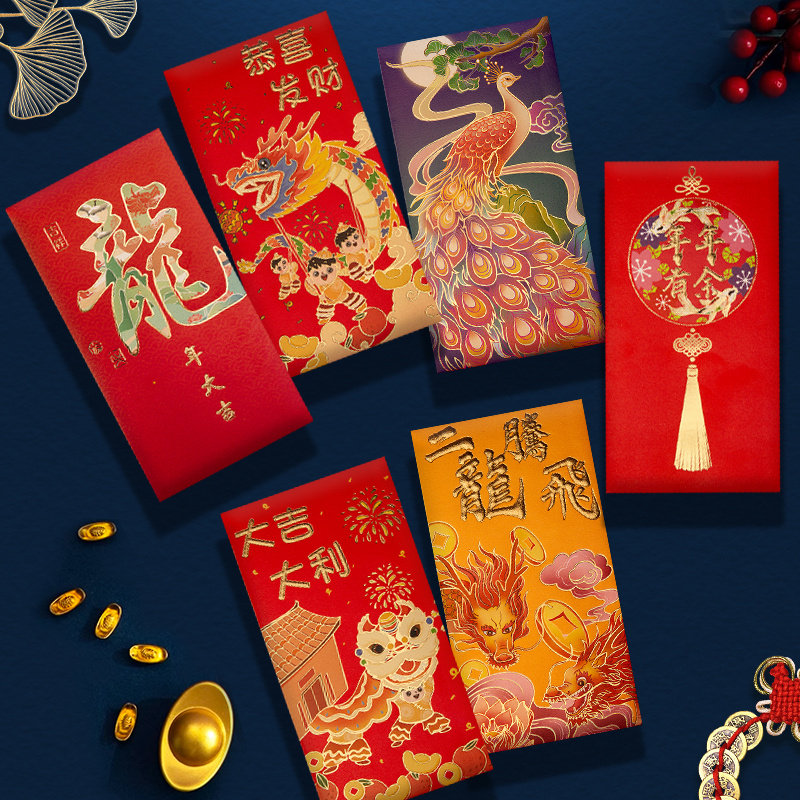 2024 Новый год Гонконг версии высокопоставленной красной конверты красной конверт красная сумка цветная печать Новогоднего новогоднего новогодних печати красного конверта запечатан