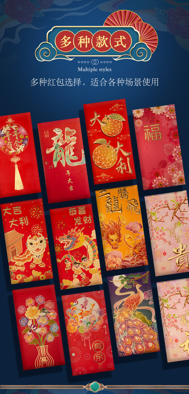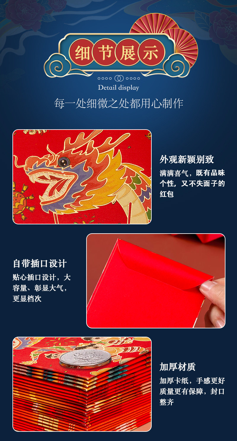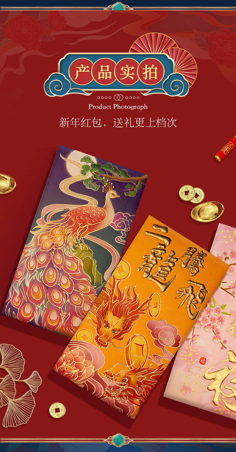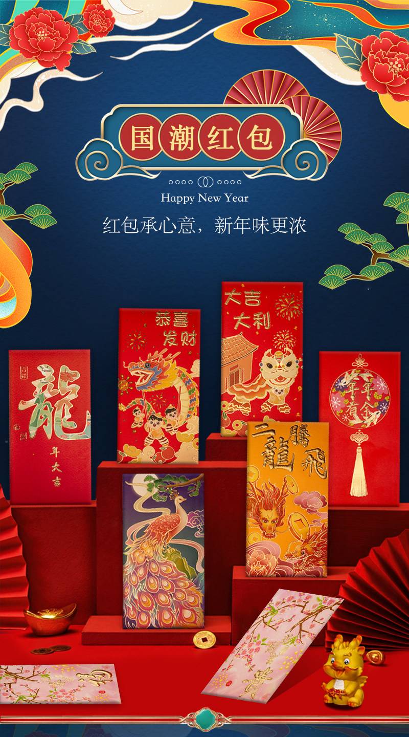 2024 Новый год Гонконг версии высокопоставленной красной конверты красной конверт красная сумка цветная печать Новогоднего новогоднего новогодних печати красного конверта запечатан