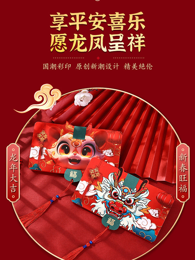 Весенний фестиваль Dragon Year складывает Red Overvelope Новый год Happy Cubs - это креативный красный конверт Qian Guochao Dragon King