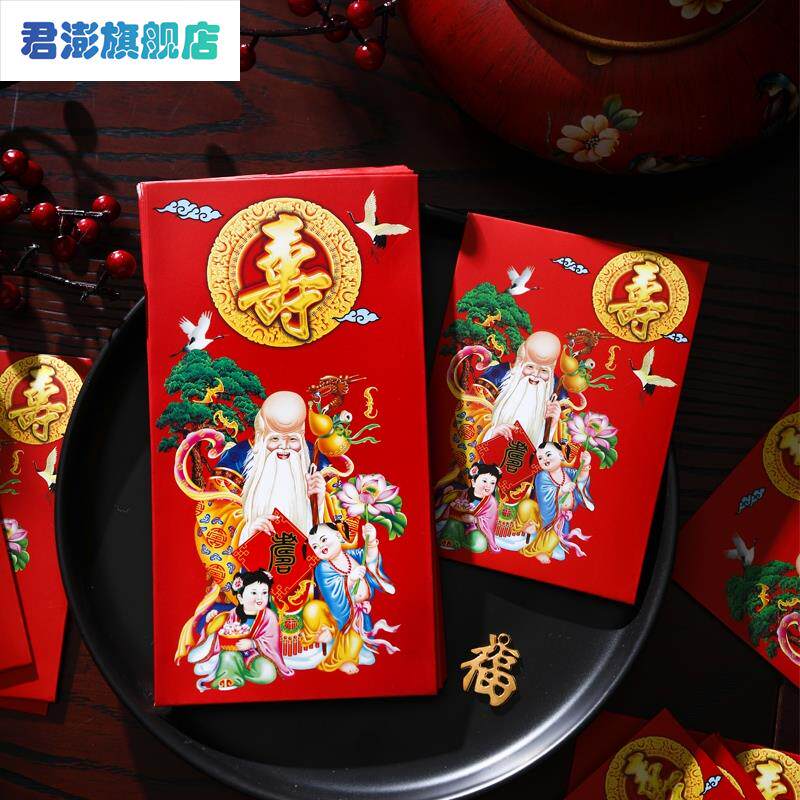 Сумка Shouzi Red Overvelope Индивидуальное творчество - запечатать пожилых людей, чтобы пройти долголетие и долговечность, красный конверт конверта, благословение звезды дня рождения - это Восточный Китай Шуби Наншан