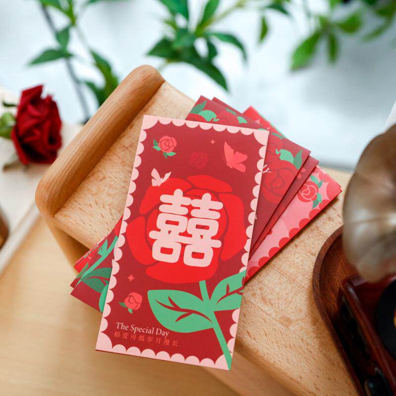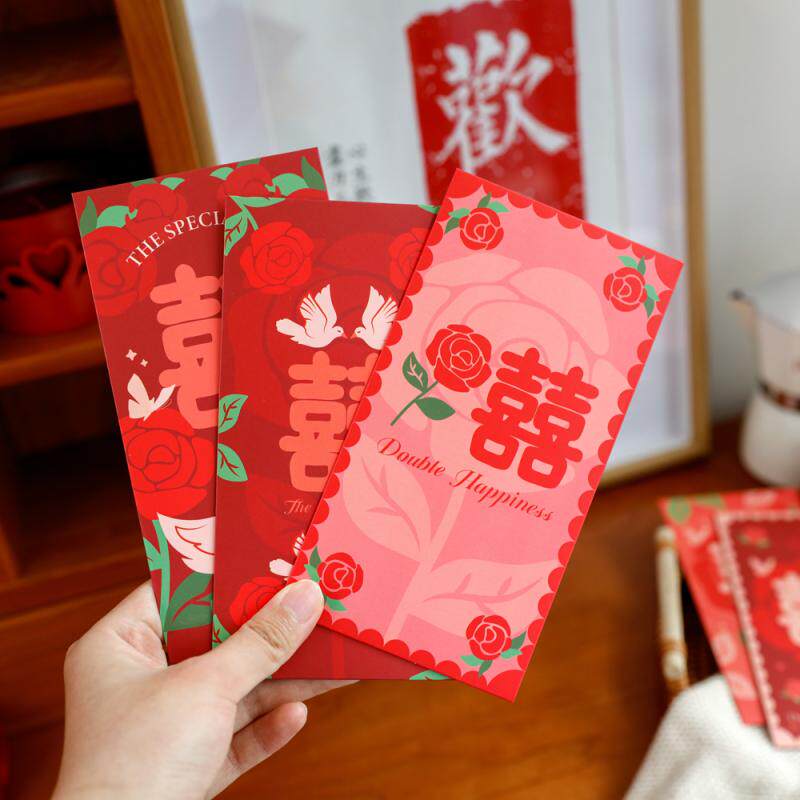 2024 Новая красная розовая свадьба красная конверт Специальные красные конверты для тысяч юаней, чтобы сменить свадьбу свадьбы с подарком - Печать