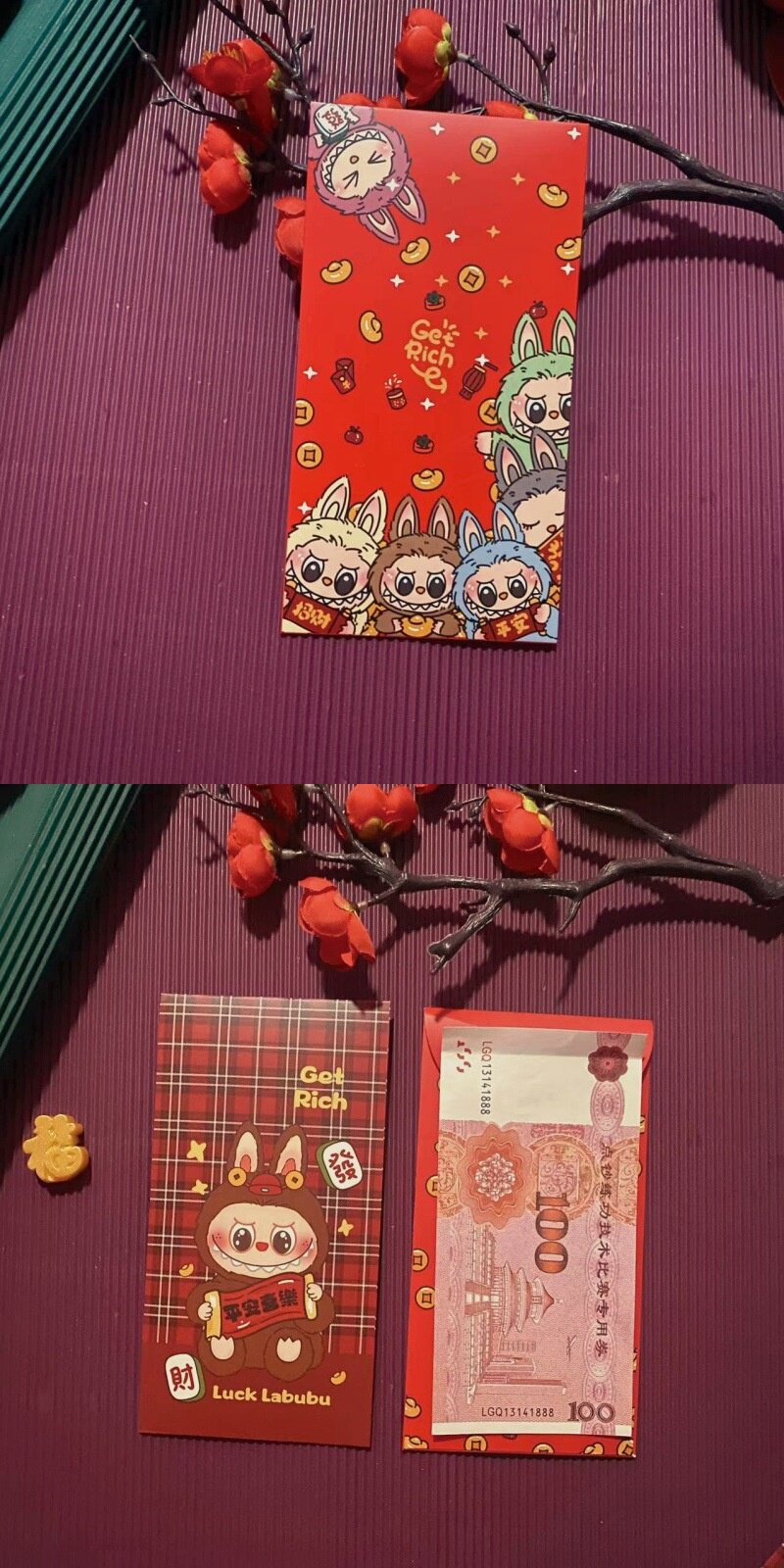 2025 Гонконгская версия мультфильма Labubu Labubu милая сумка красного конверта особенно прибыльна
