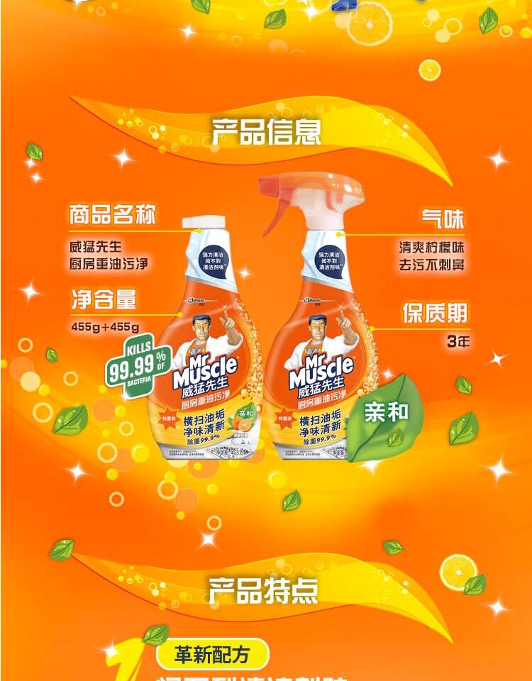 Мистер Вэй Мэн кухня тяжелый масло Откройте для себя 2 бутылки кухонных капюшонов уборка, чистящие средства чистящие средства для чистки средств.