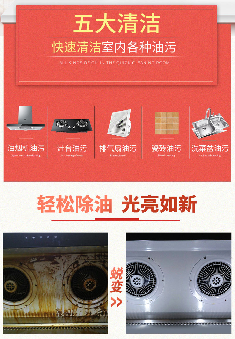 Масляная чистящая капюшона, грязный артефакт кухонная пена очиститель, загрязнение маслом, помехи, домашнее тяжелое масло, спрей