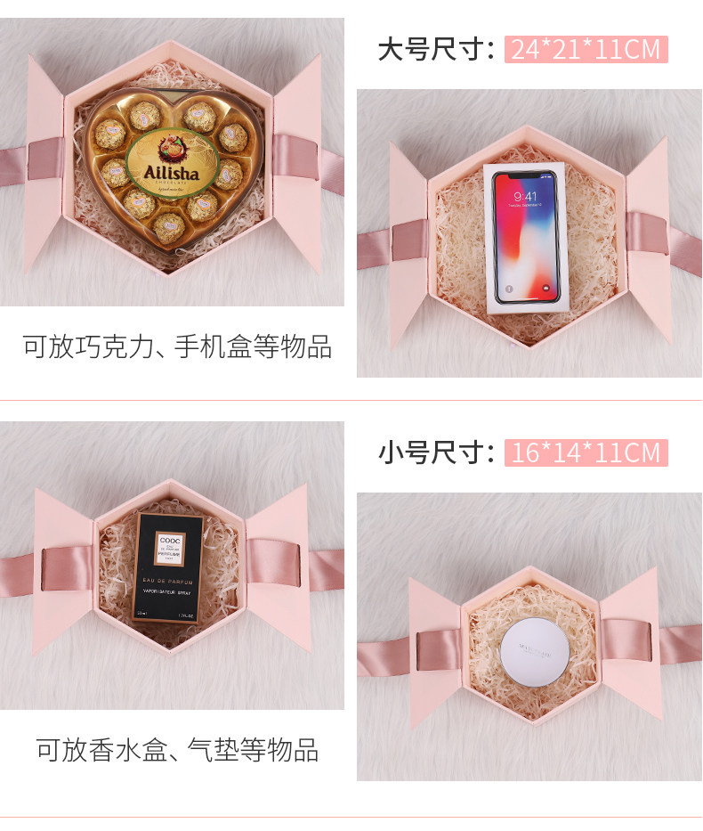 | Размер: | Большая шестиугольная подарочная коробка, косметический мобильный телефон, крем, палетка теней, 24×21×11см, Большая подарочная коробка, мобильный телефон, машина для пузырьков, 21×21×12см, Маленькая шестиугольная подарочная коробка, помада, духи, 16×14×10см, Маленькая подарочная коробка, помада, духи, 15×15×10см |