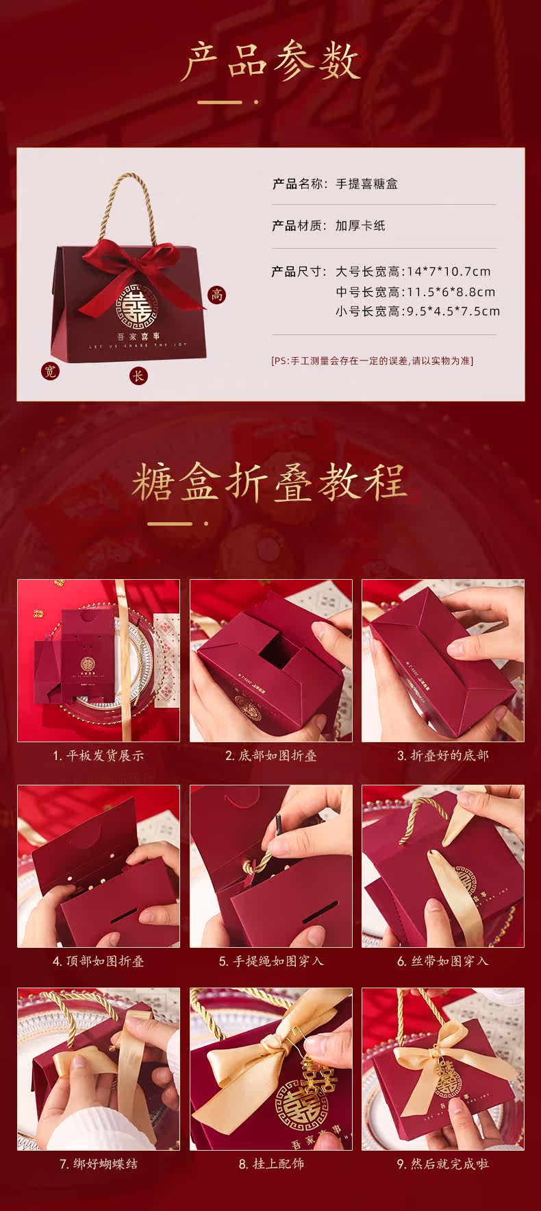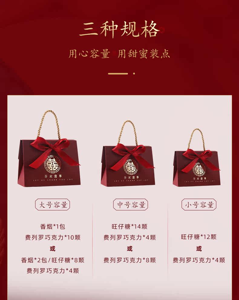 | Размер: | Большой (10 свадебных конфет), Средний (10 пачек свадебной конфеты), Маленькая (10 пакетов свадебной конфеты) |