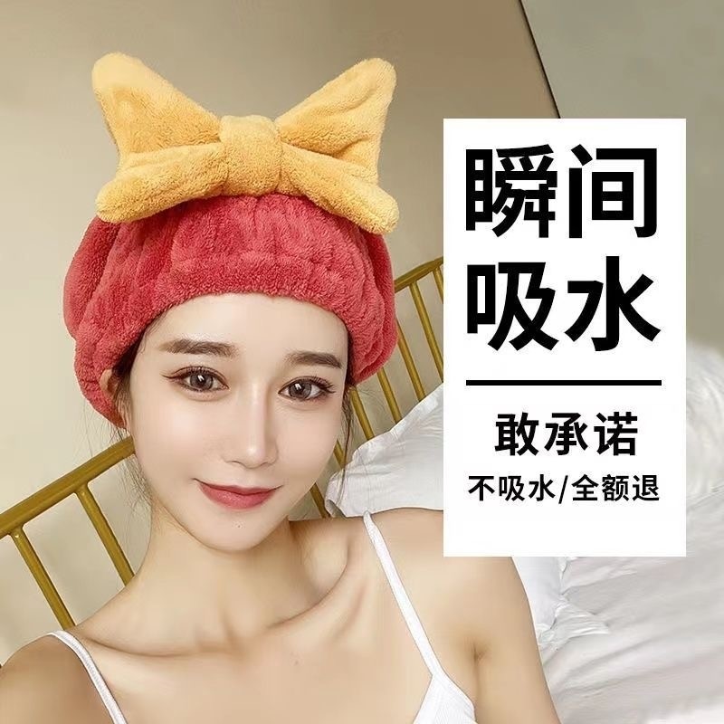 Быстросохнущее милое полотенце для волос с бантиком, сухая шапочка для душа для домашнего использования, хорошо впитывает воду