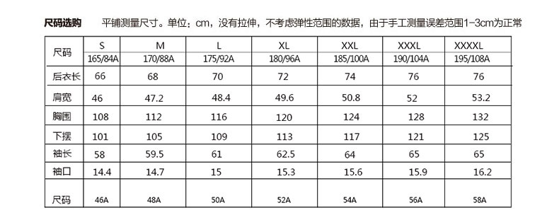 | Размер: | 165/84A/S, 170/88A/M, 175/92A/L, 180/96A/XL, 185/100A/XXL, 190/104A/XXXL, 195/108A/XXXXL |