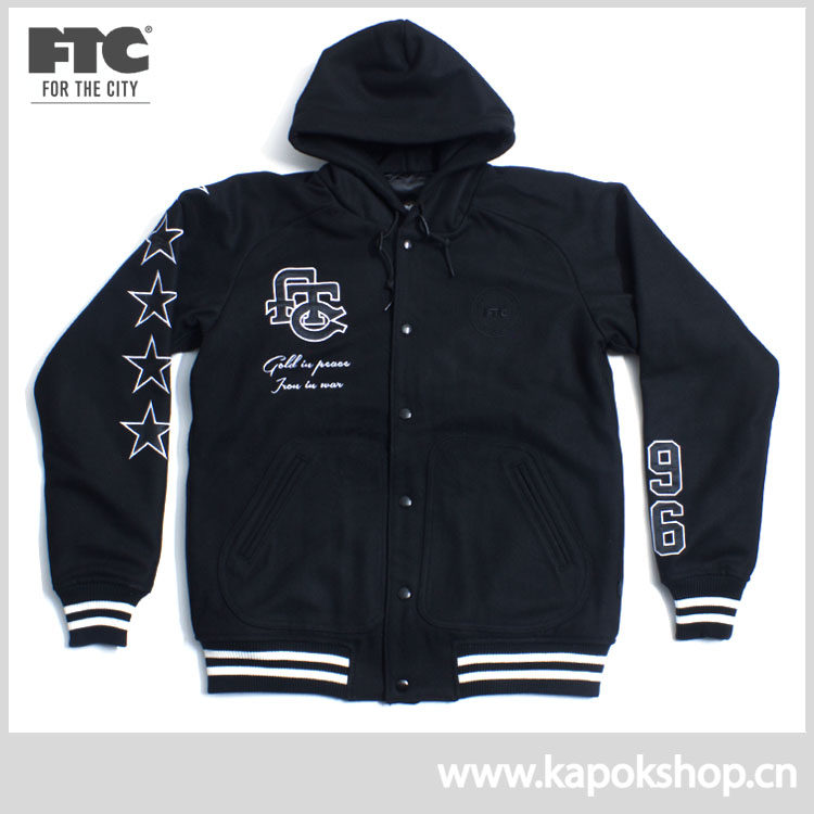 FTC Skateboard Wool Baseball Cotton Jacket Jacket Melton университетская куртка Black