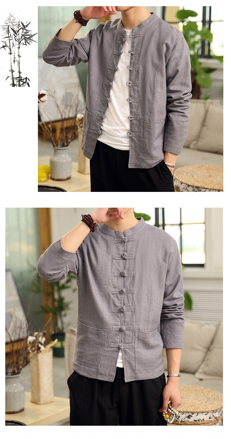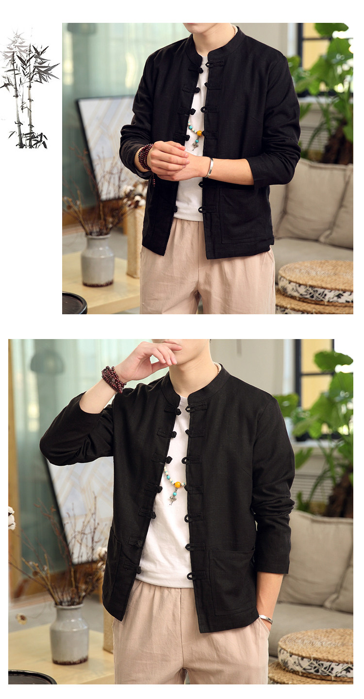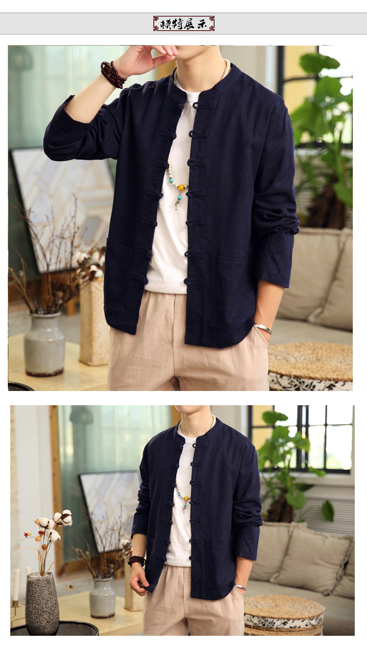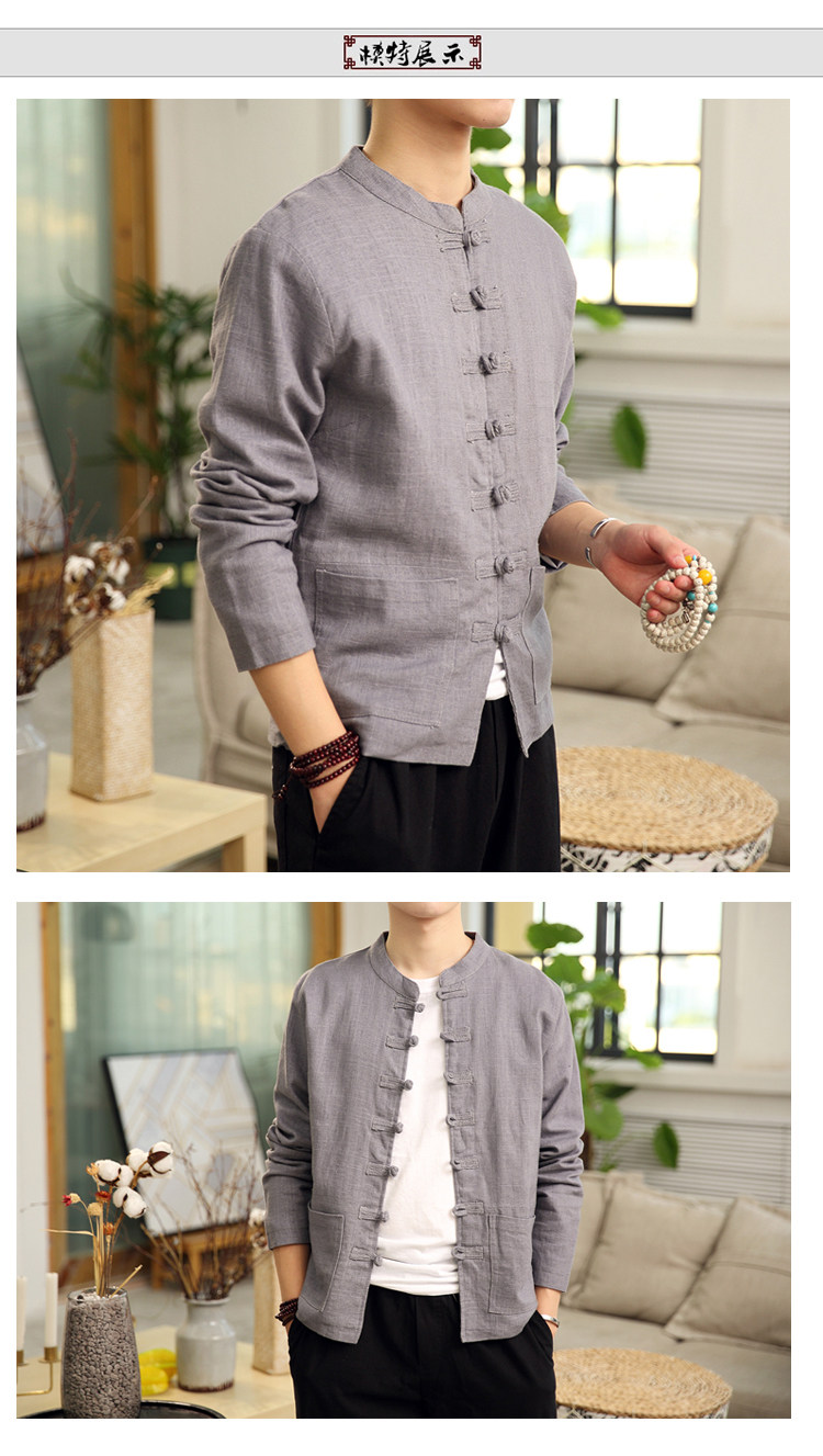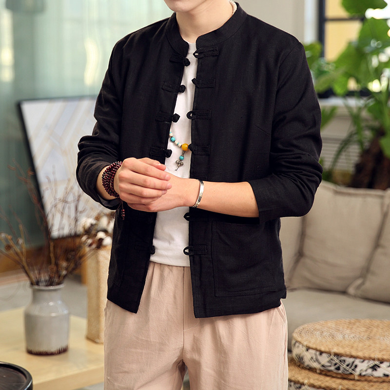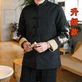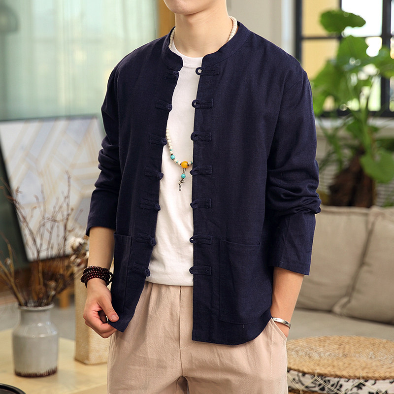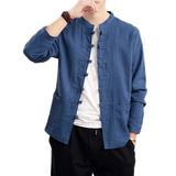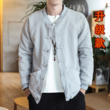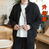 Демисезонная куртка, китайский стиль, большой размер, из хлопка и льна, свободный крой