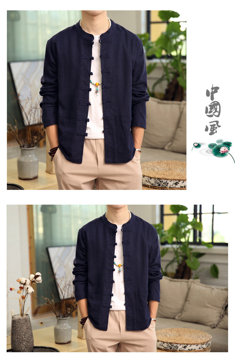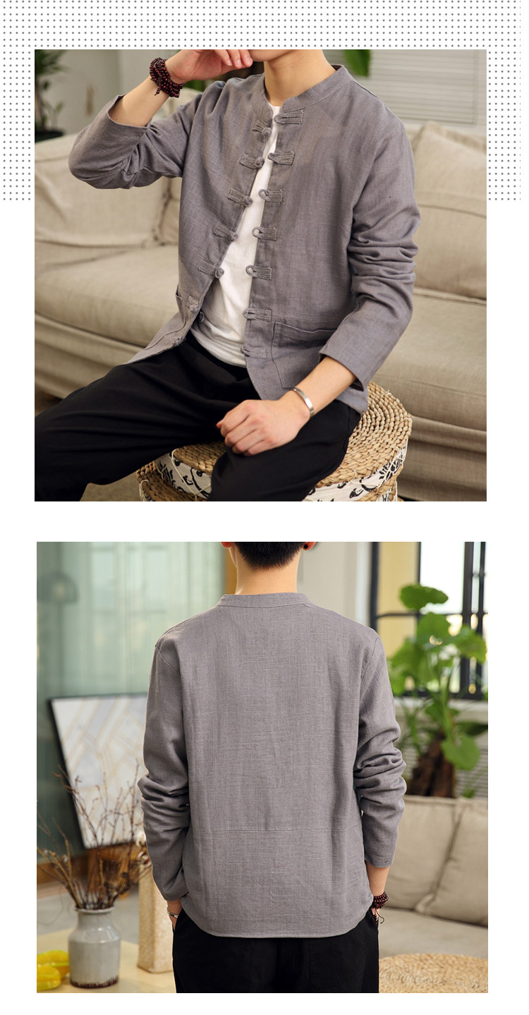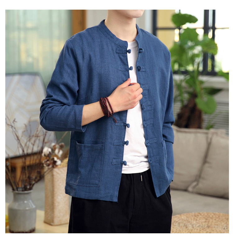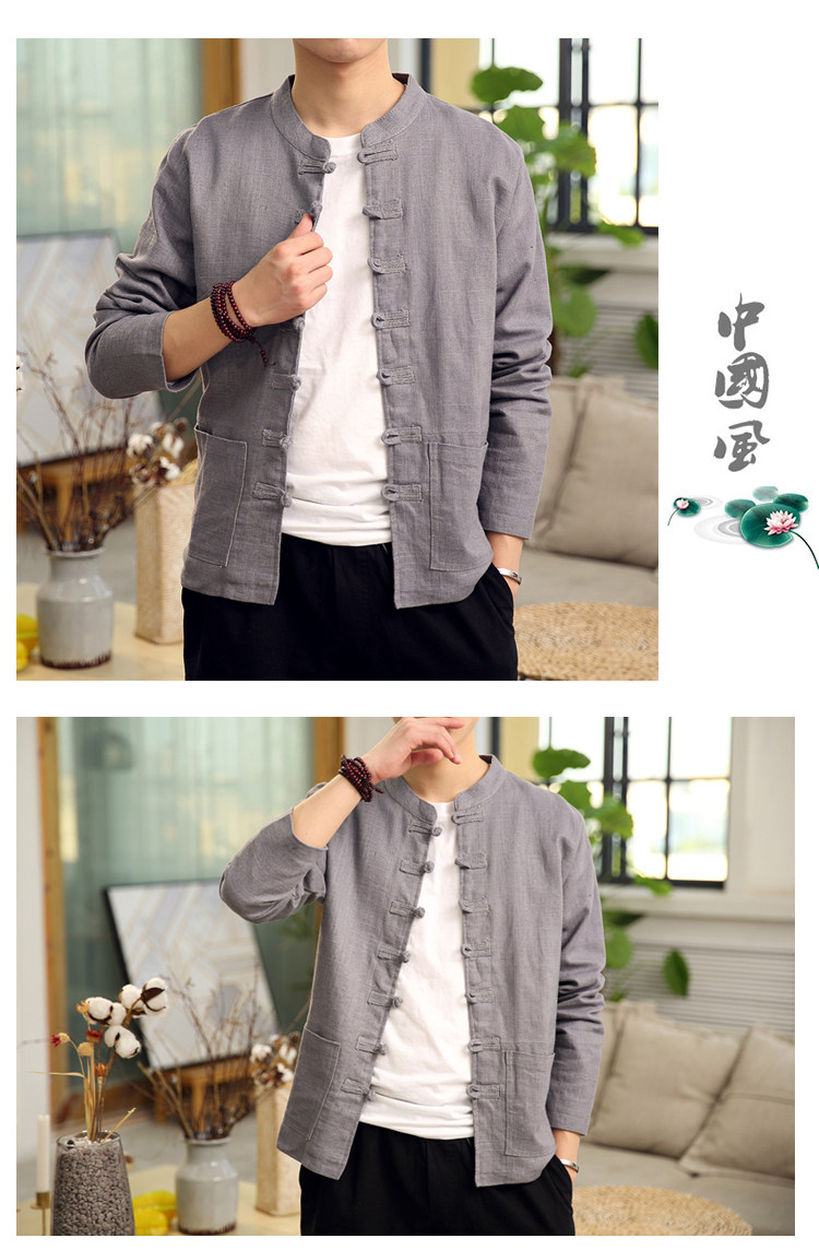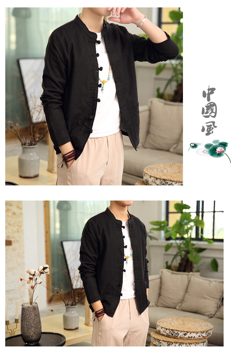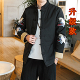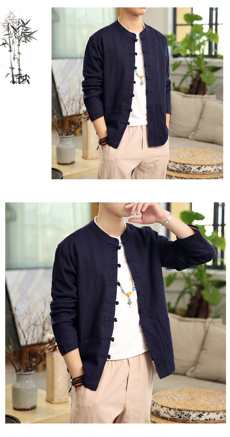 Демисезонная куртка, китайский стиль, большой размер, из хлопка и льна, свободный крой