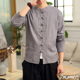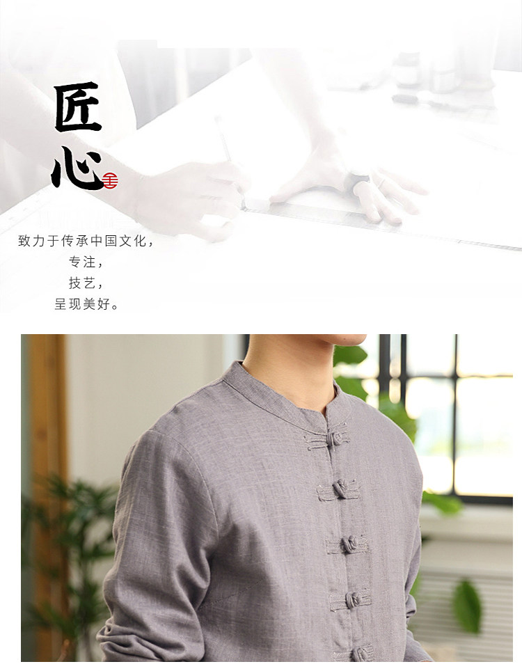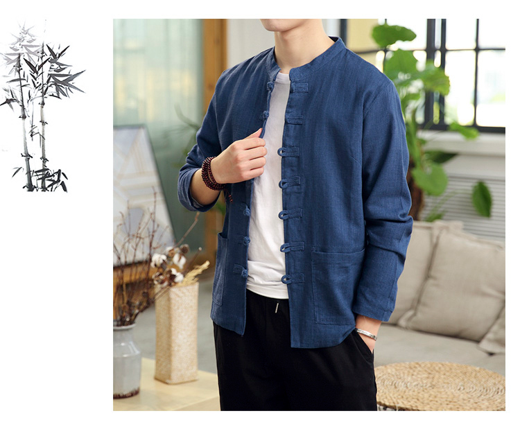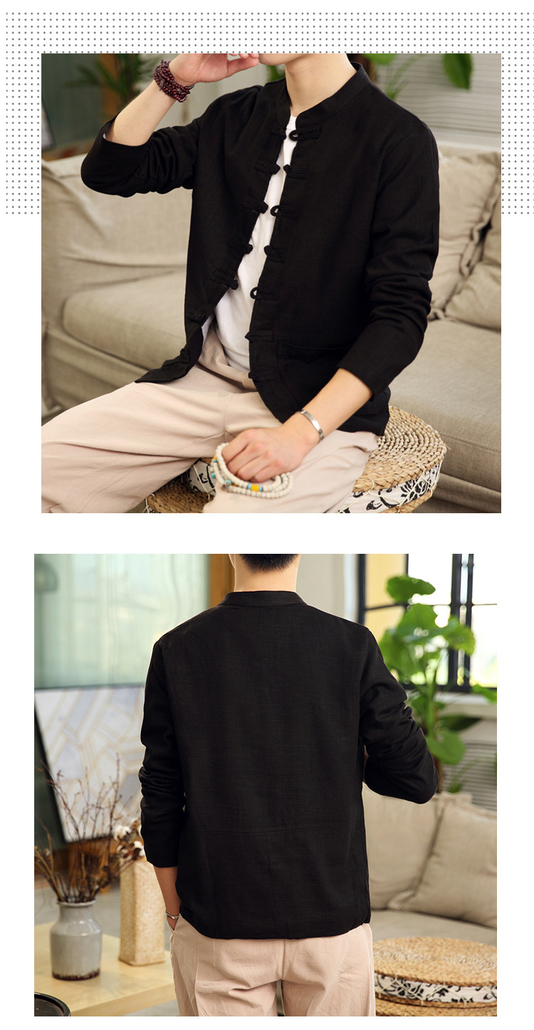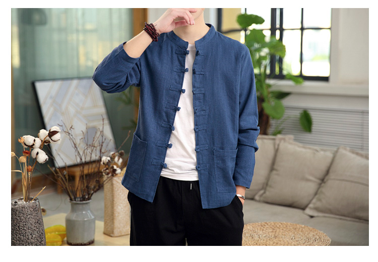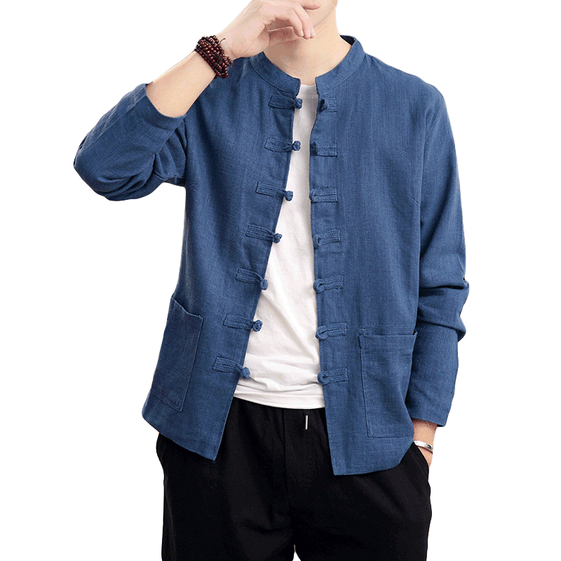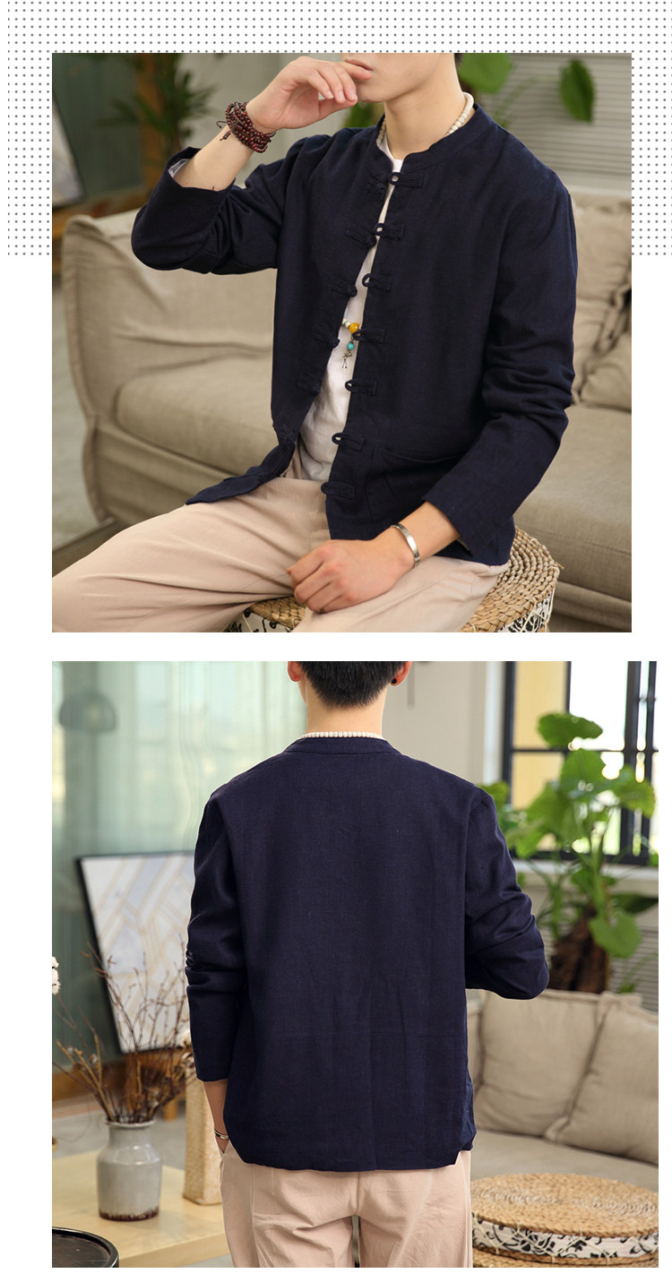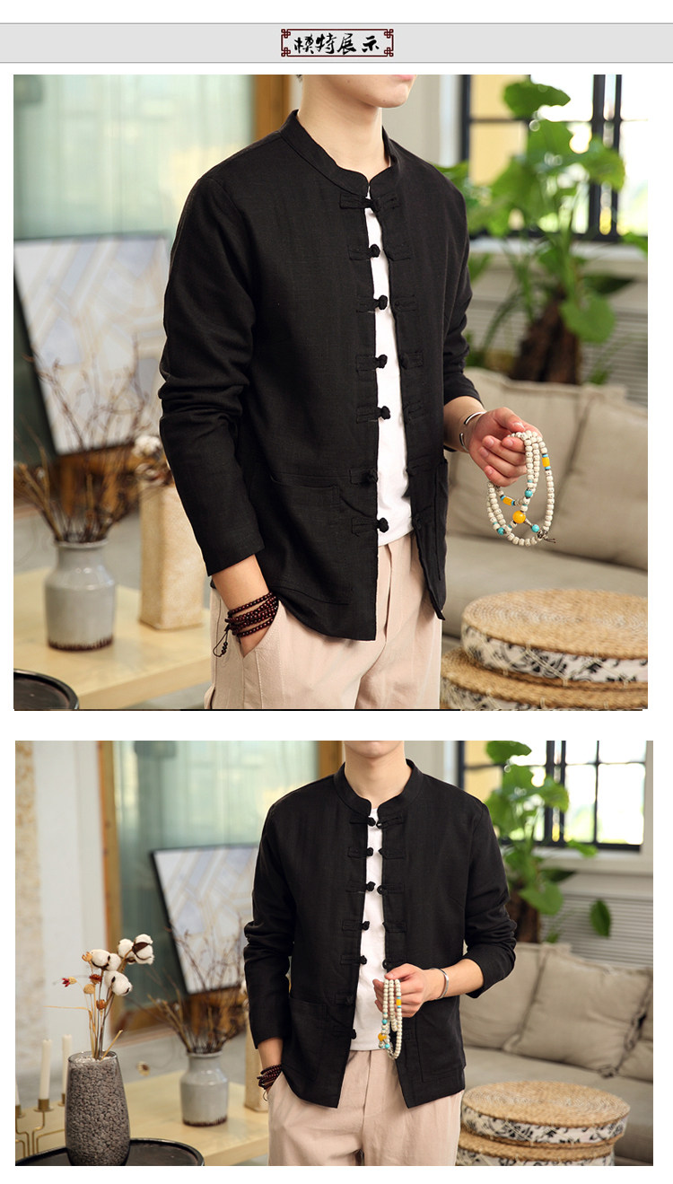 Демисезонная куртка, китайский стиль, большой размер, из хлопка и льна, свободный крой