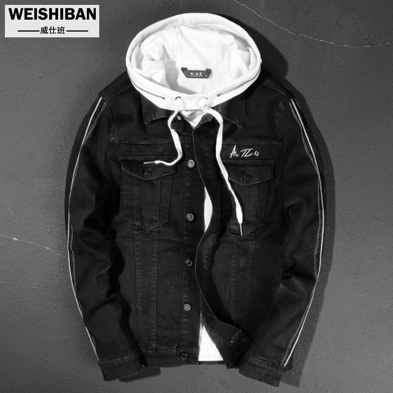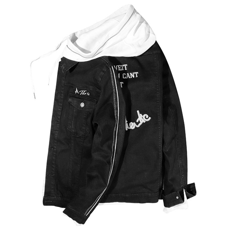 Осенняя джинсовая мужская трендовая черная куртка, 2018, в корейском стиле, английские буквы, с вышивкой