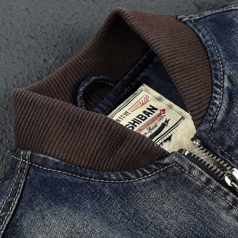 Утепленная джинсовая мужская бейсбольная куртка, увеличенная толщина