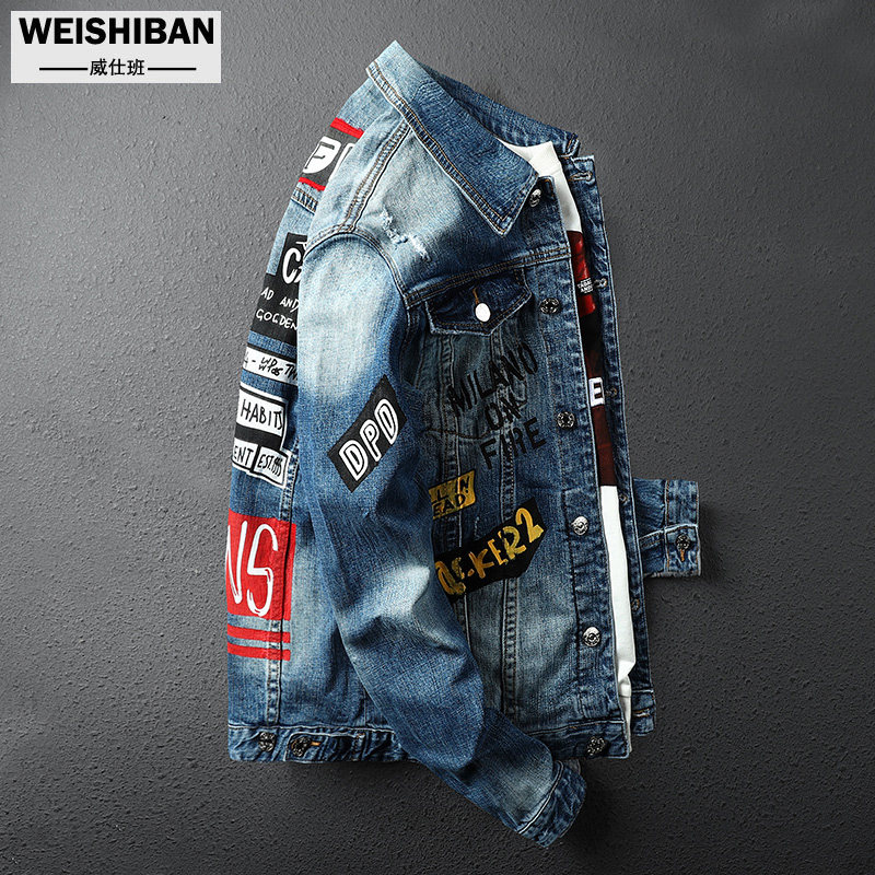 Весенняя джинсовая синяя куртка, тренд сезона, с вышивкой, европейский стиль