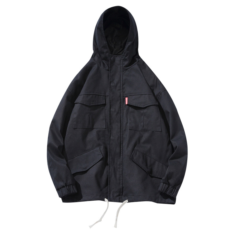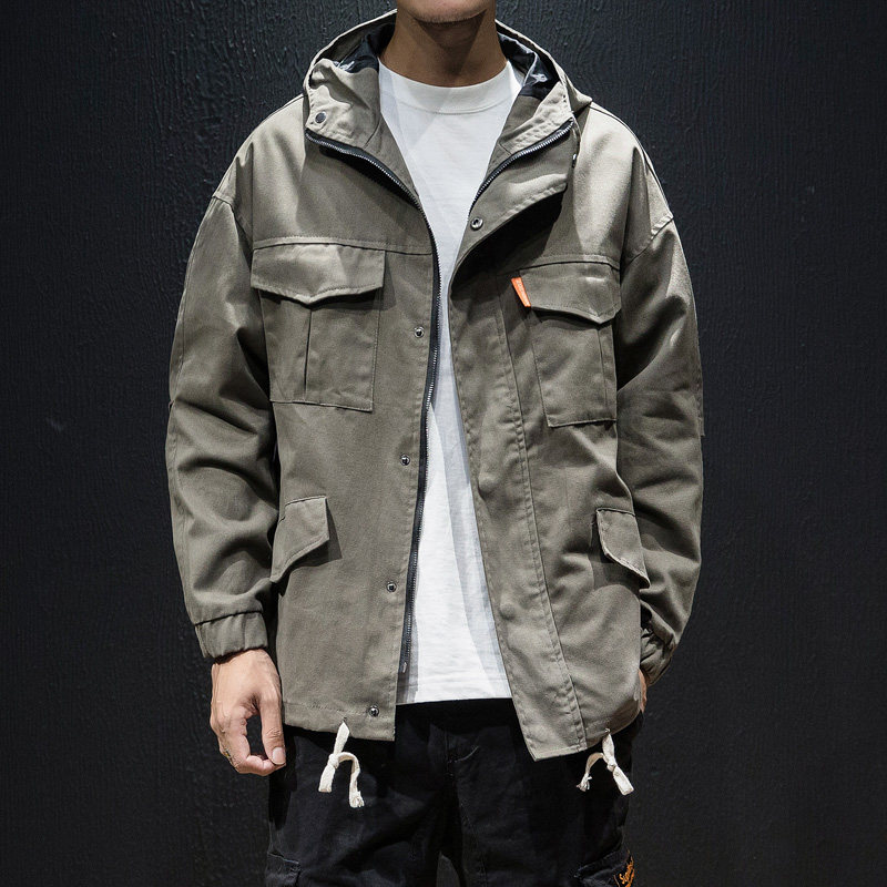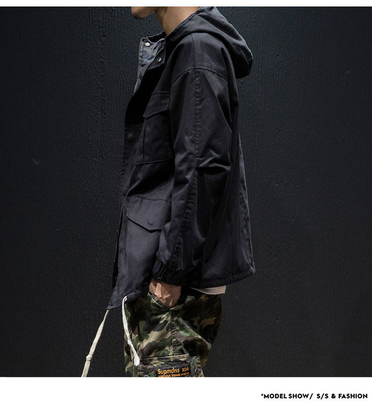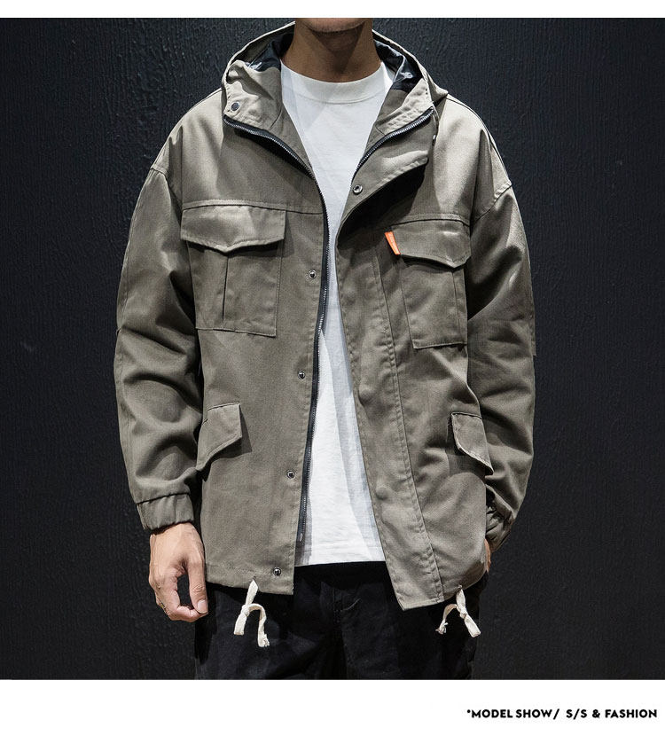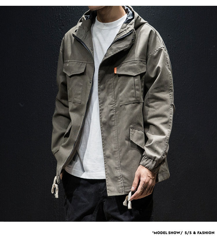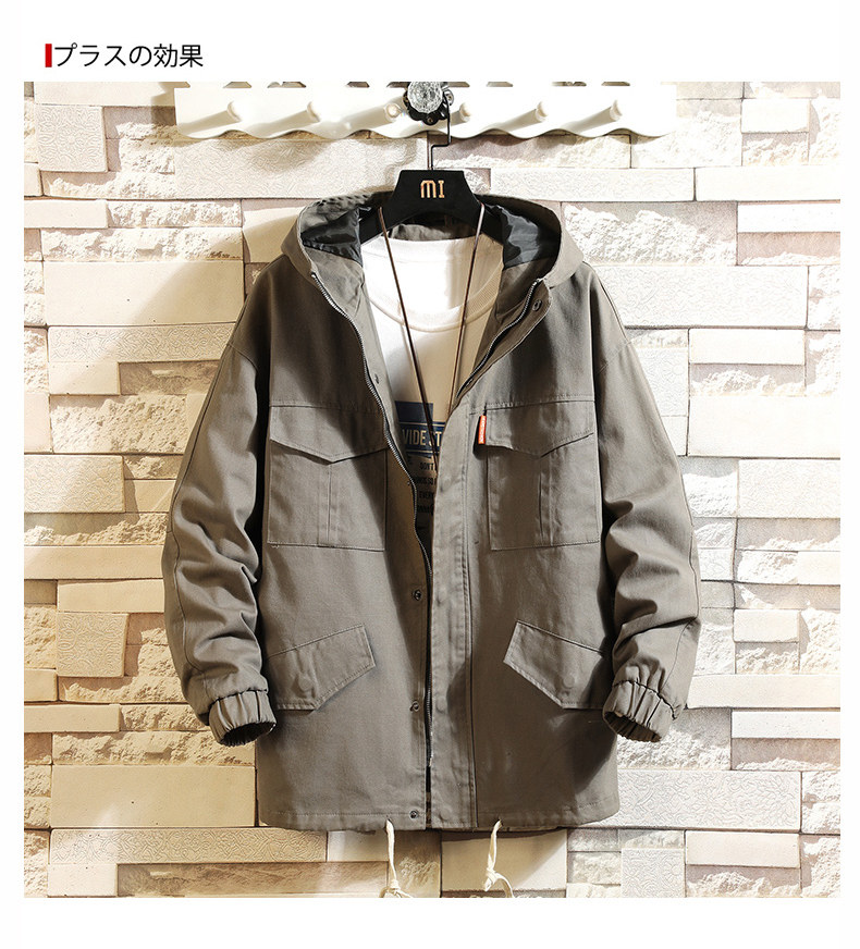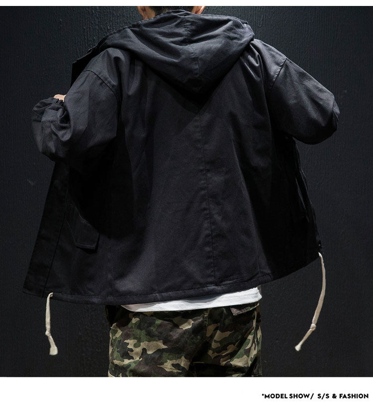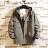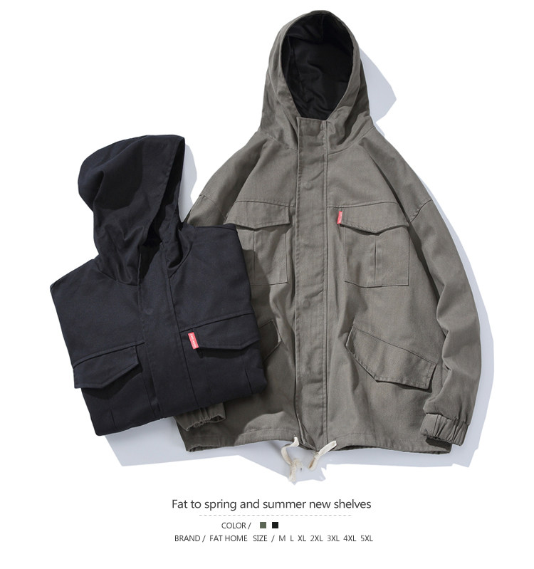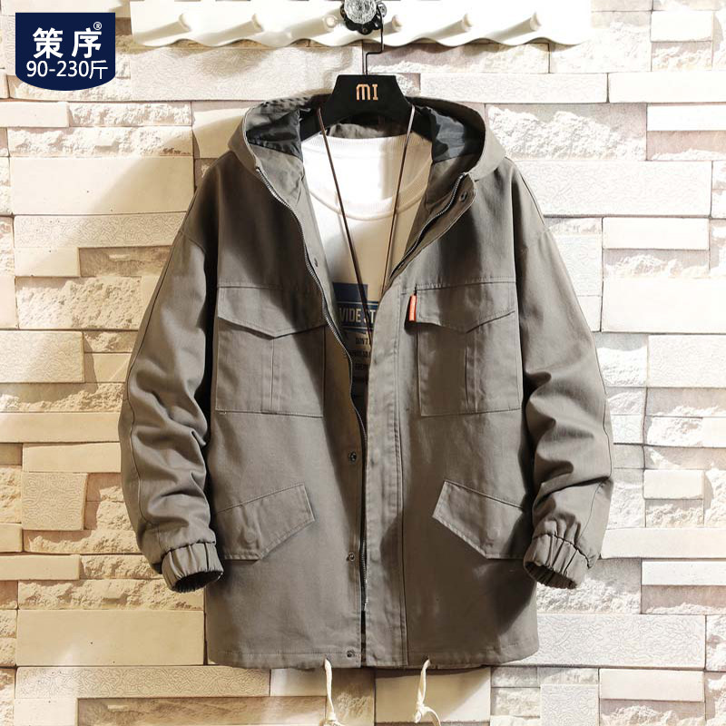Куртка, японская ретро демисезонная толстовка с капюшоном, свободный крой, большой размер
